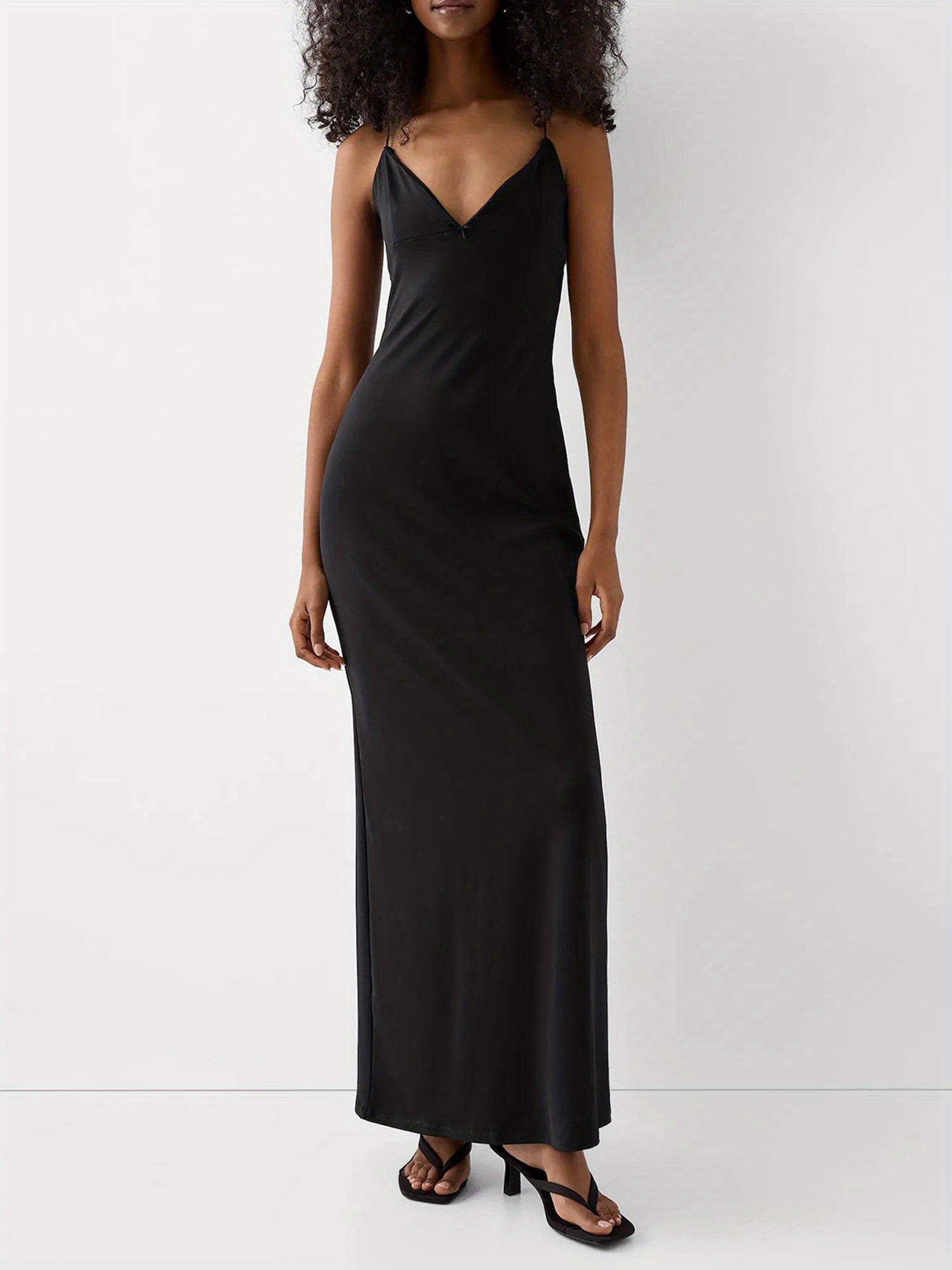 1pc Elegant Solid Color Slingback Evening Gown for Women - Off the Shoulder V-Neck Sleeveless Fitted Spaghetti Strap Long Dress - Woven Fabric for Spring/Summer/Fall