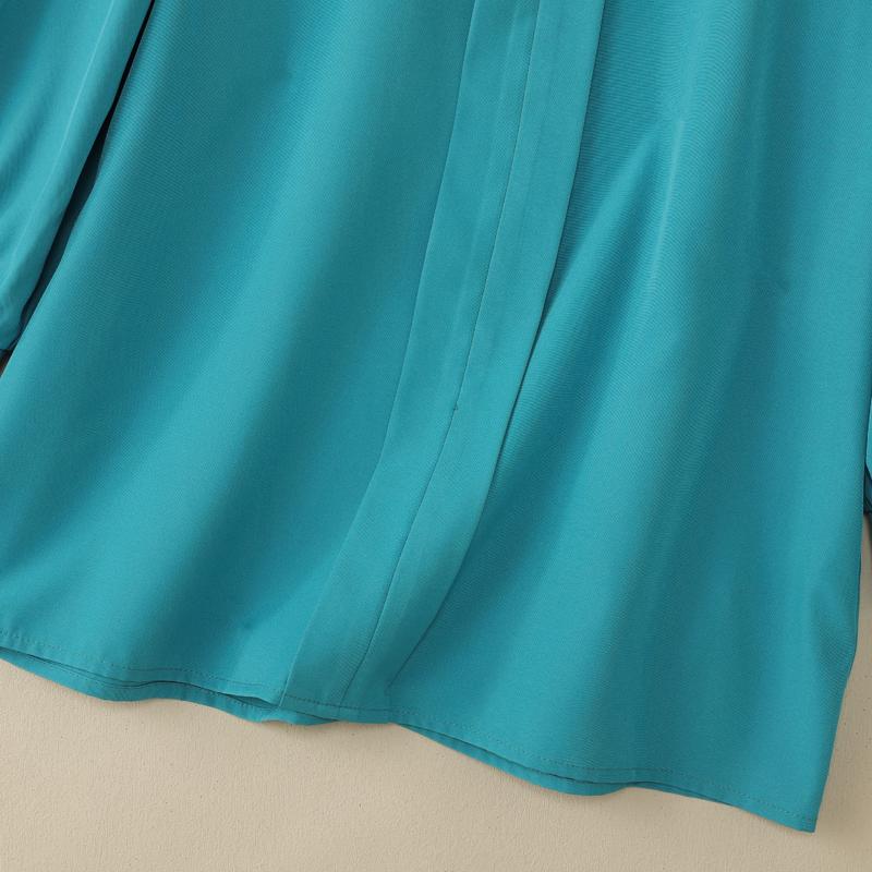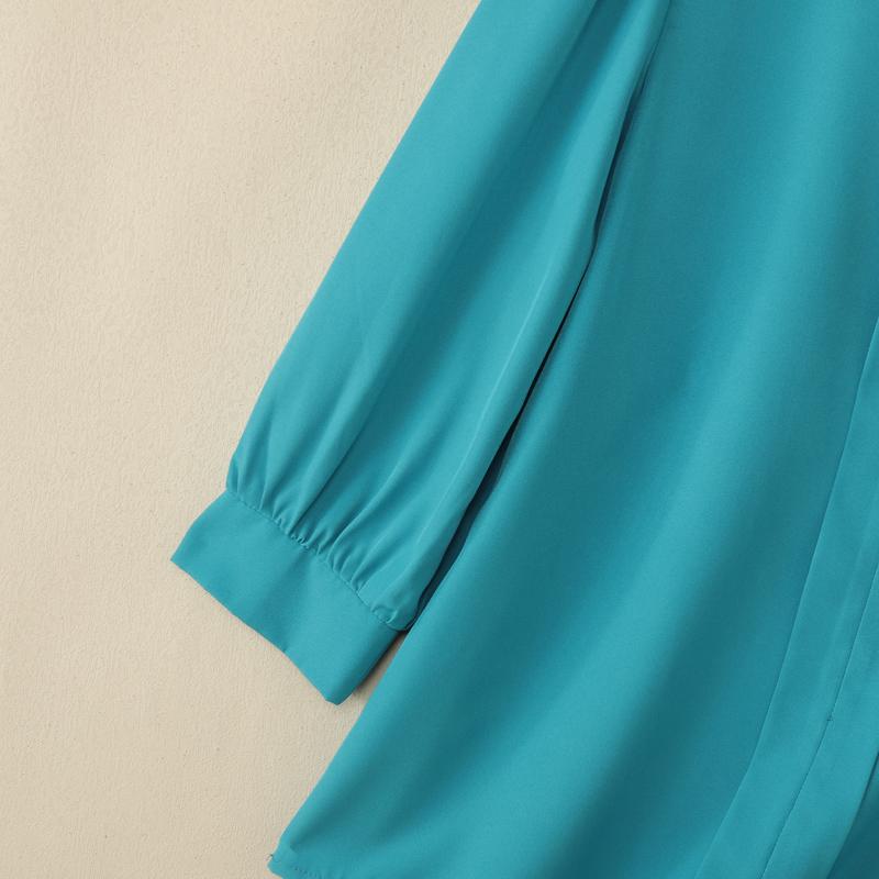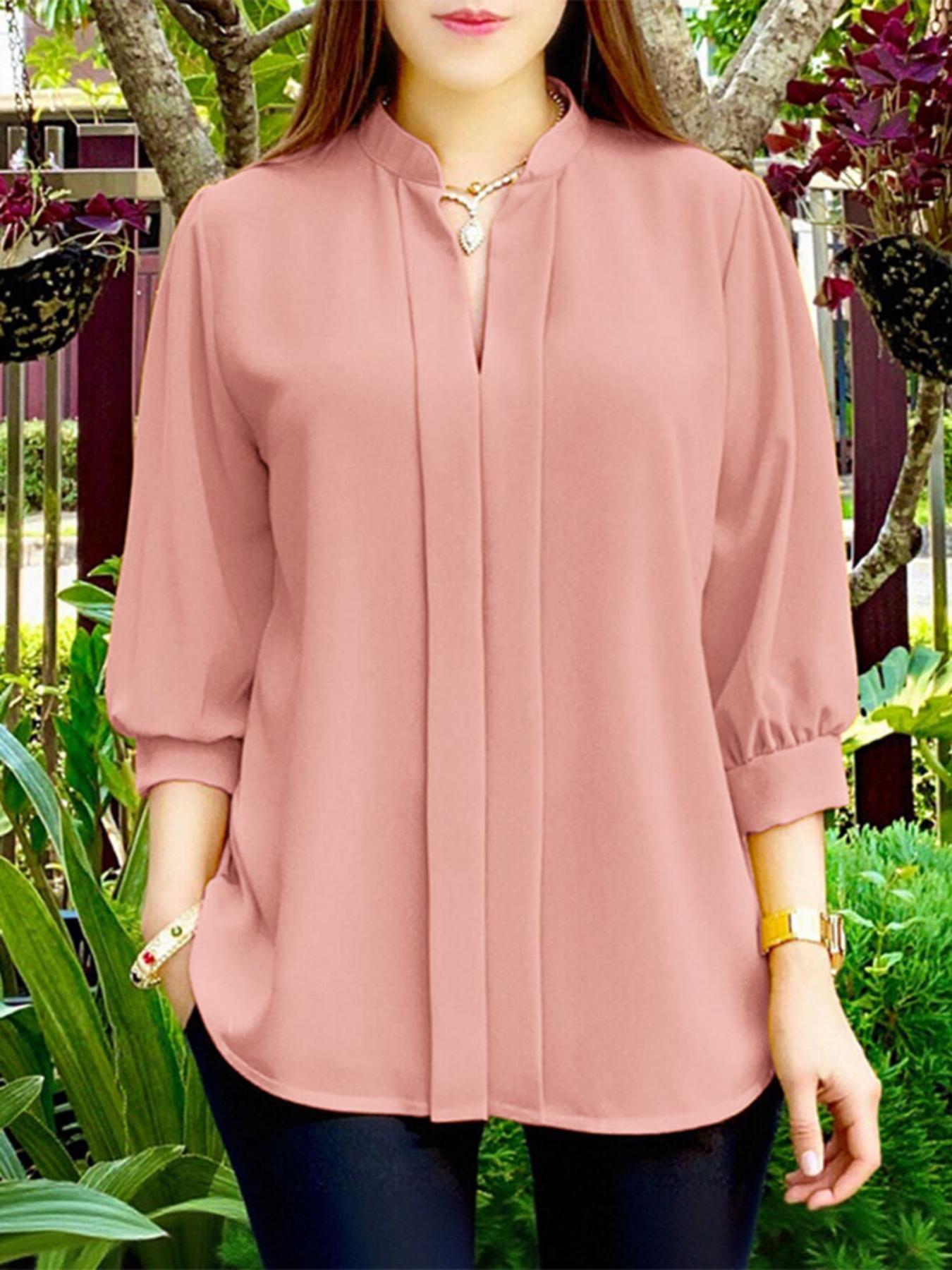Plus Size - ZANZEA Women'S Elegant 3/4 Lantern Sleeve Stand Collar Blouse - Lightweight Non-Stretch Solid Color Casual Shirt with Button Front, All-match Leisure Top For Plus Size, Versatile Clothing