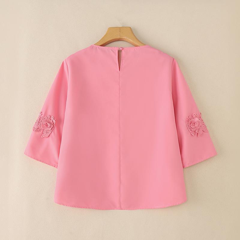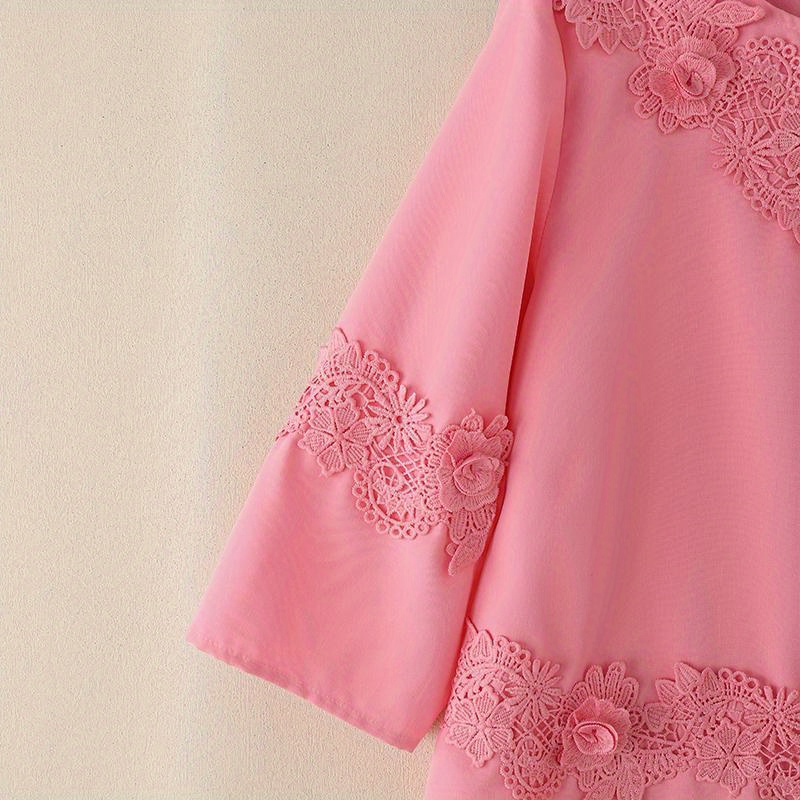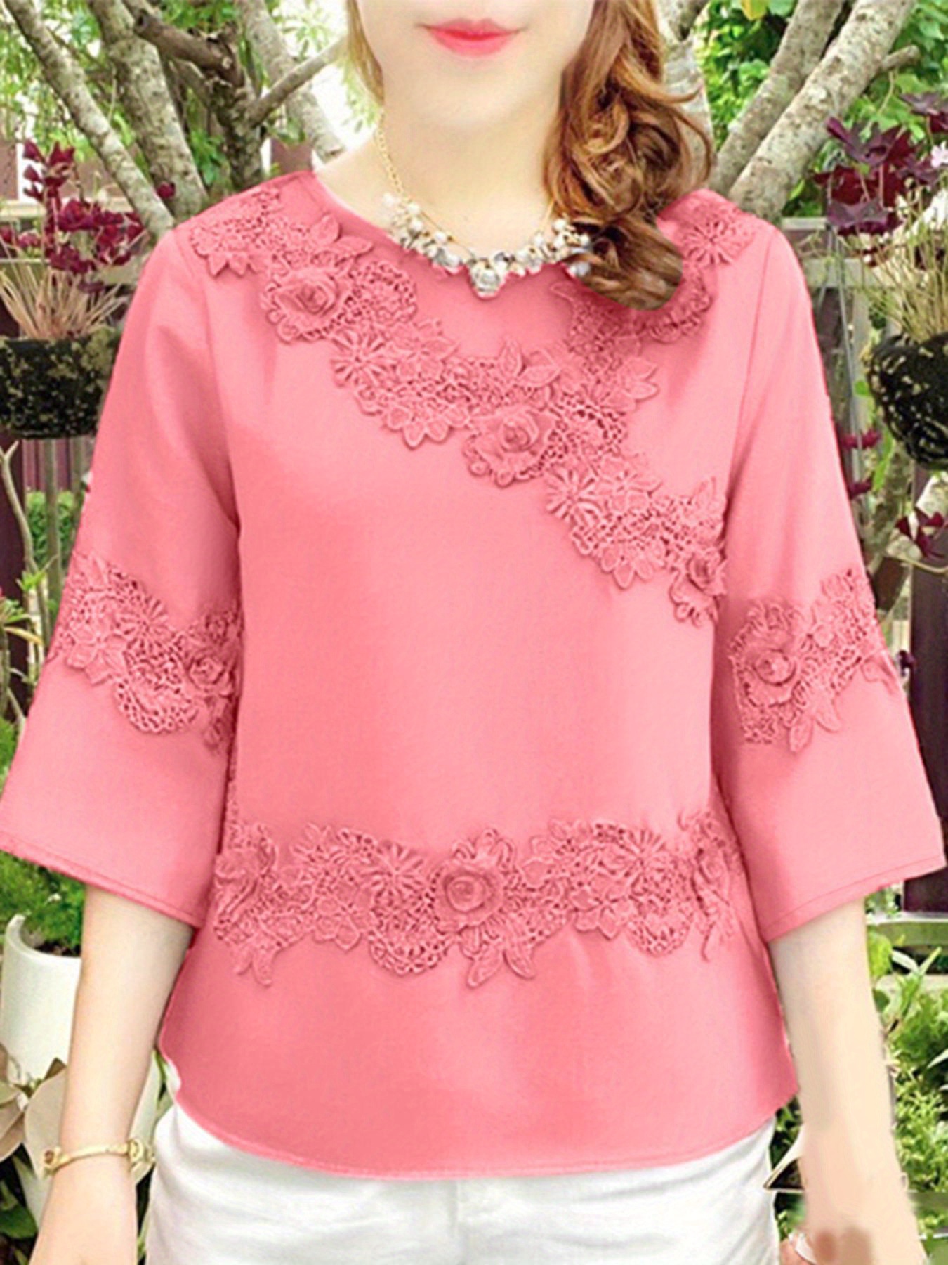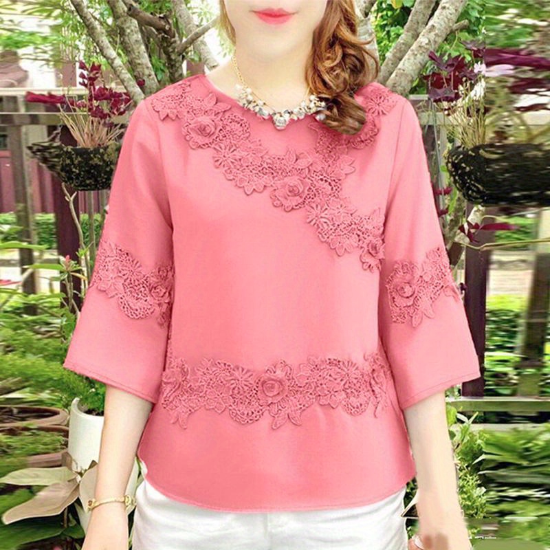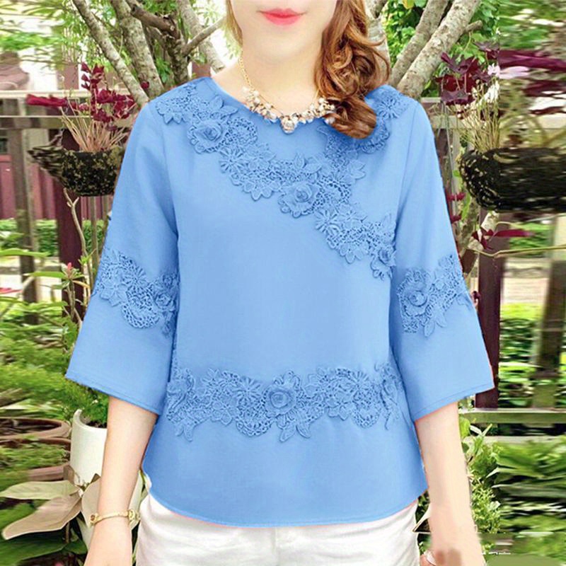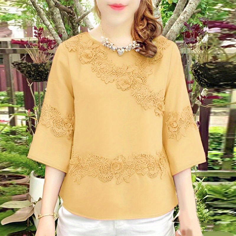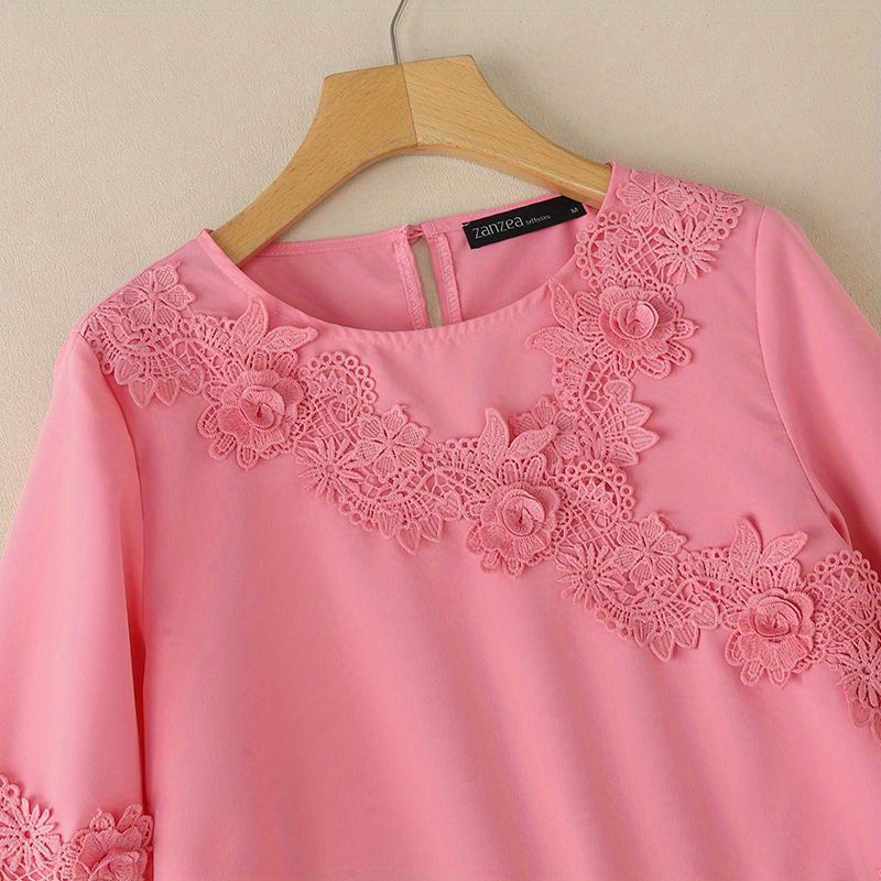 Plus Size, ZANZEA Women's Plus Size Elegant Blouse - 3/4 Sleeve Crew Neck Baggy Shirt, Lightweight All-Season Wedding Guest Dress-like Top, Machine Washable White Collar Blouse for Office, Party & Casual Attire (Plus Size Friendly)