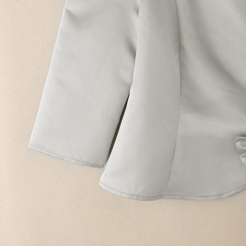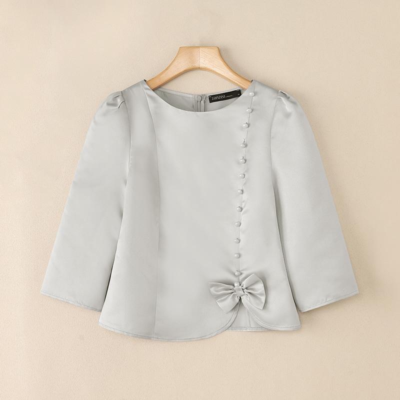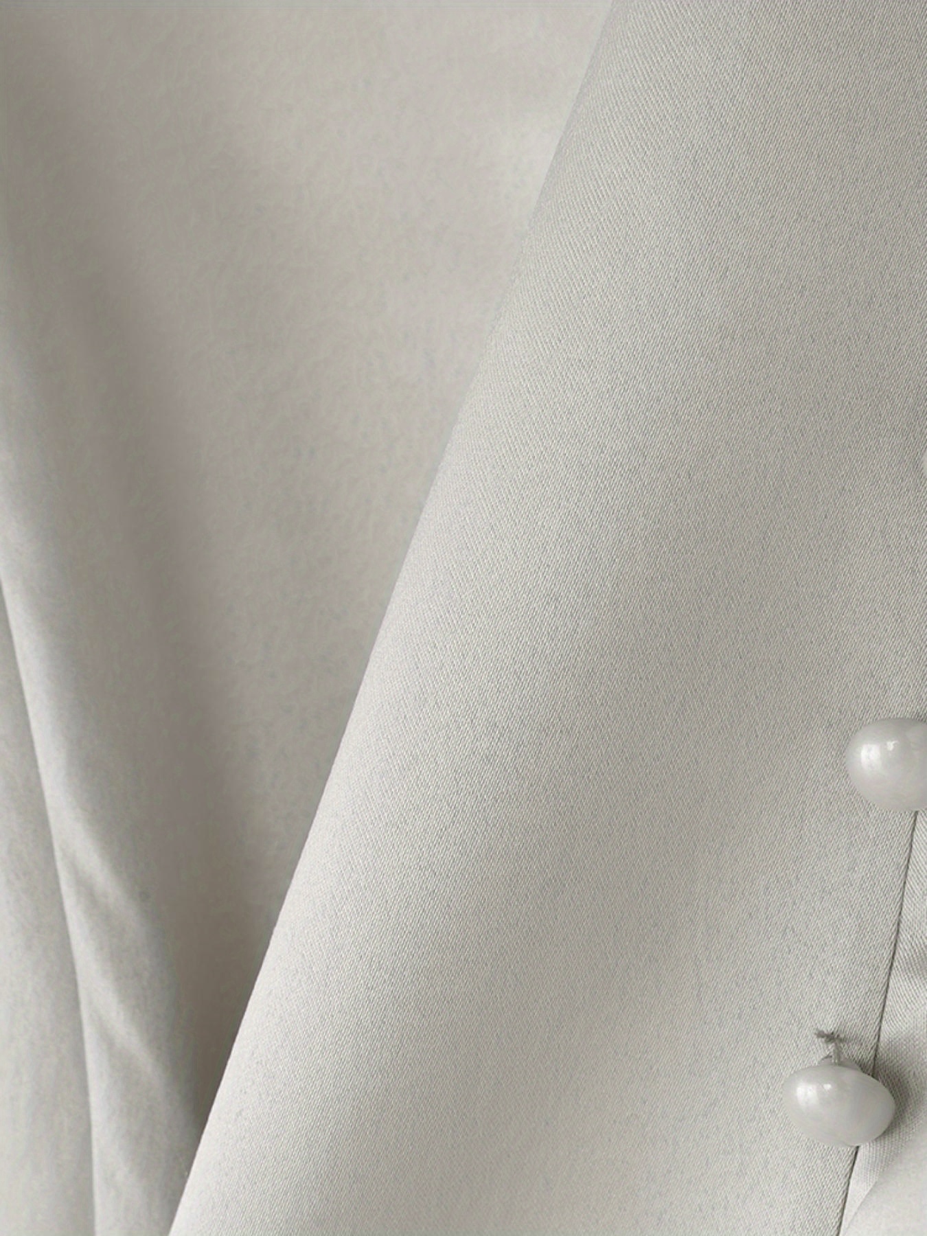 Plus Size, ZANZEA Women's Plus Size Elegant Blouse - Pink & White Puff Bow-Knot Collar, Short Jacket-like Button-Front Top, Loose Fit 3/4 Sleeve Shirt for Wedding, Office, Party, Wedding Guest (Machine Washable) - No-Stretch Round Neck