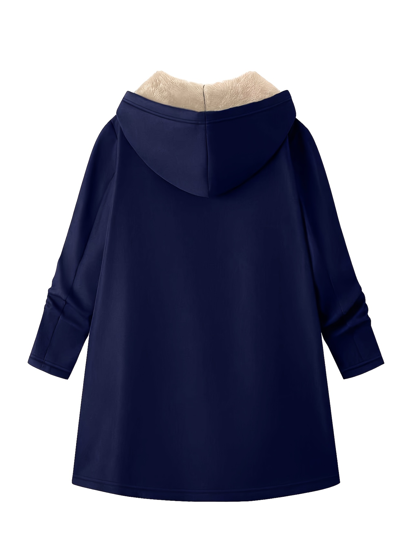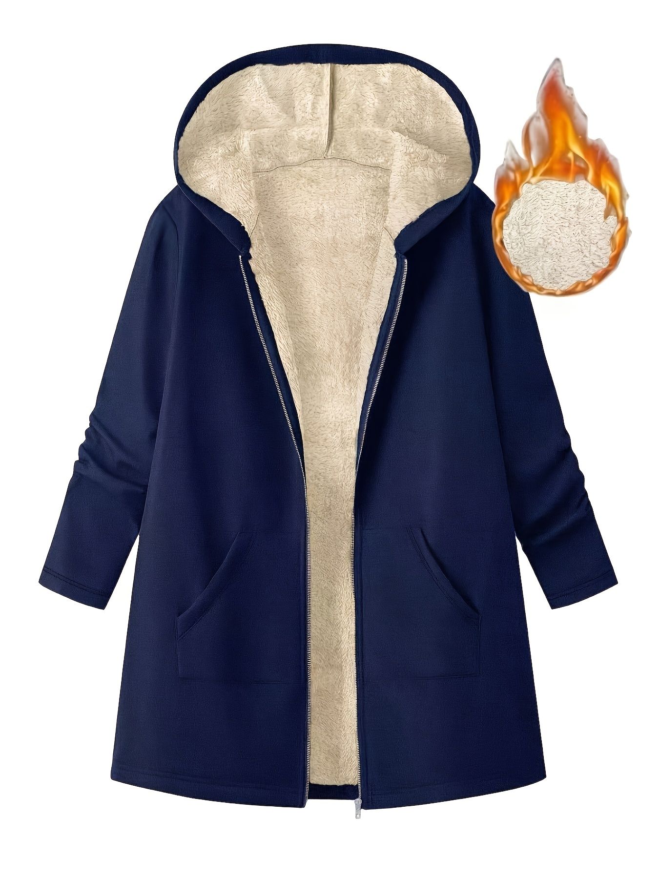 Plus Size, Women's Mid-Length Hooded Winter Coat with Fleece Lining - Light Grey & Casual Elegant Outerwear, Full-Zip Closure, Relaxed Fit, Machine Washable, Pockets for Fall and Winter Warmth (Office to Weekend Wear)