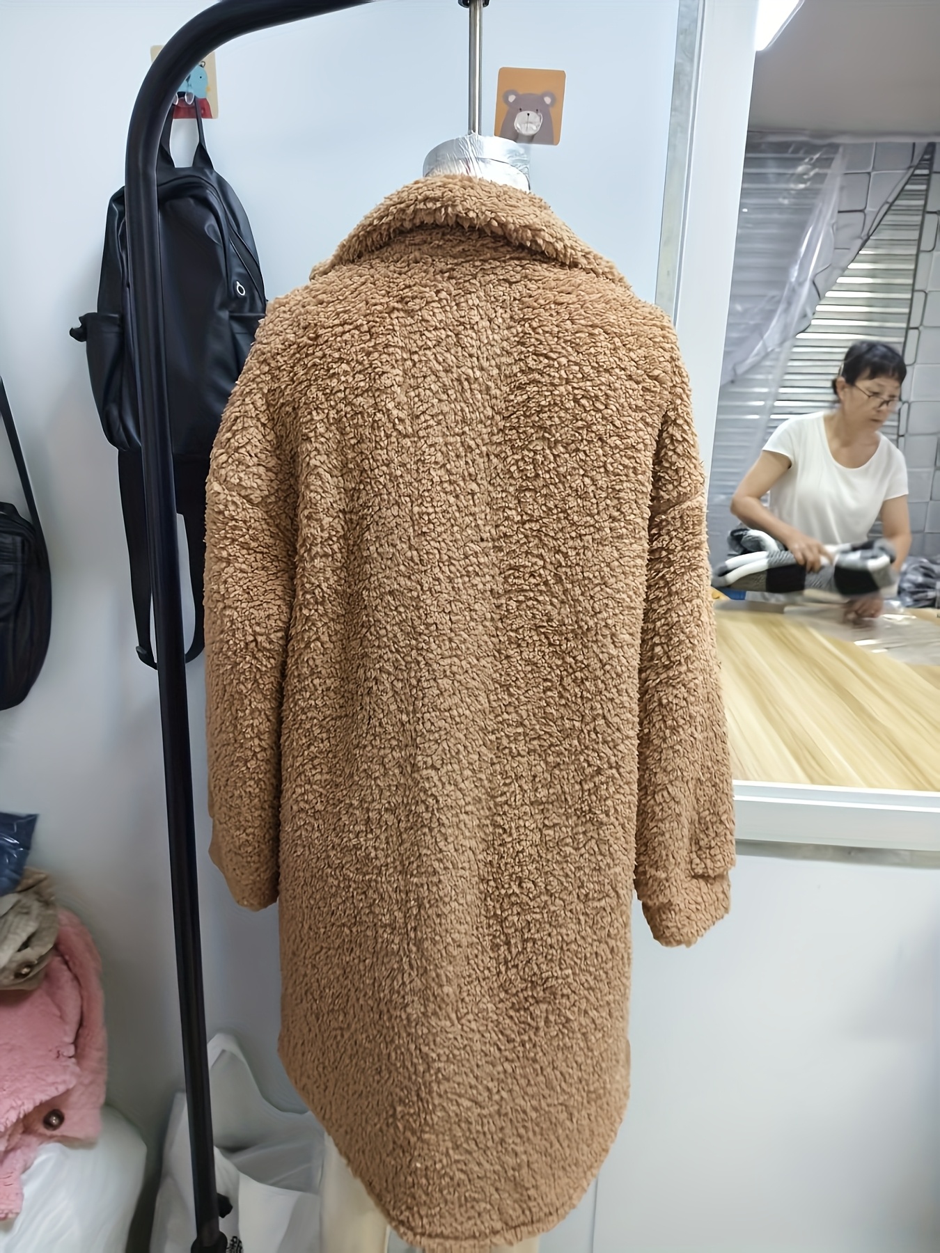 Plus Size, Women's Plus Size Oversized Faux-Fur Collar Lapel Coat - Elegant Winter Jacket with Lapel Collar & Pockets, Notch Lapel Button-Front Blazer, Machine Washable Large Coat for Fall/Winter, Casual & Formal Wear (Teddy Bear Style) - Warm