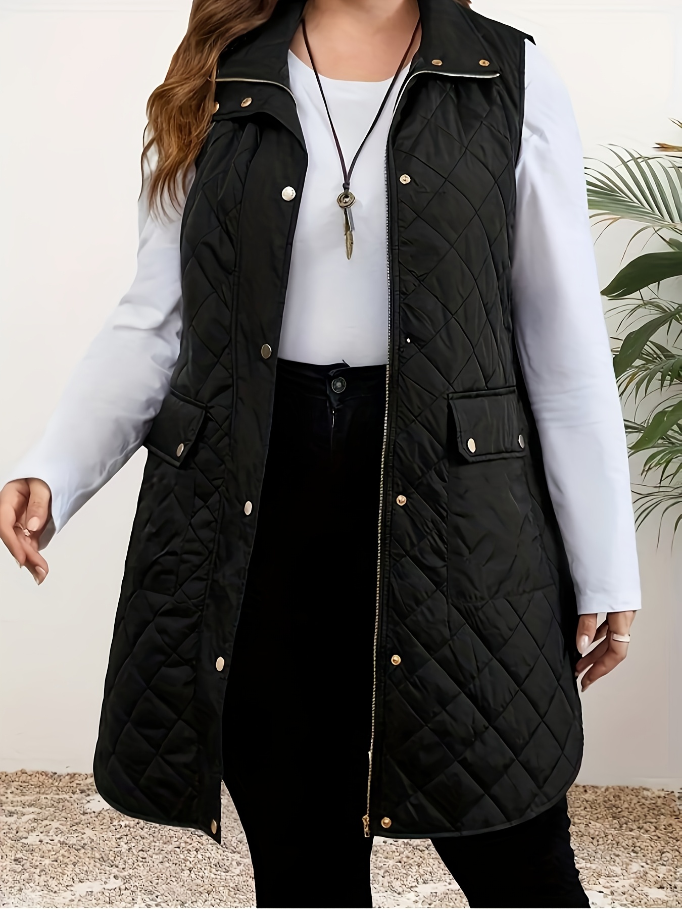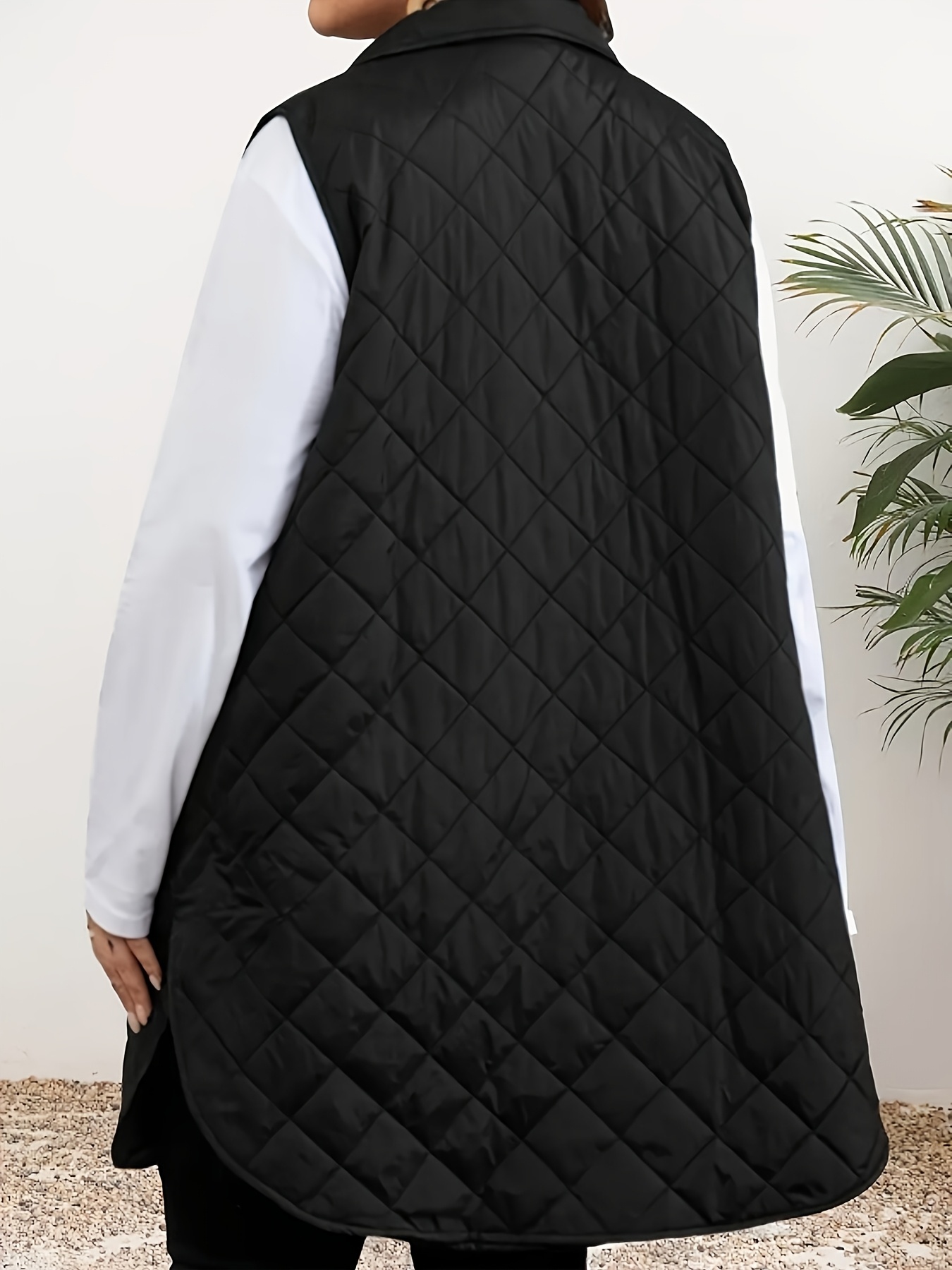 Women'S Casual Quilted Mid-Length Vest with Front Pockets - Soft Polyester, Button-Up, Loose Fit for Casual Attire, Versatile Layering Piece | Buttonfront Vest | Functional Pocket