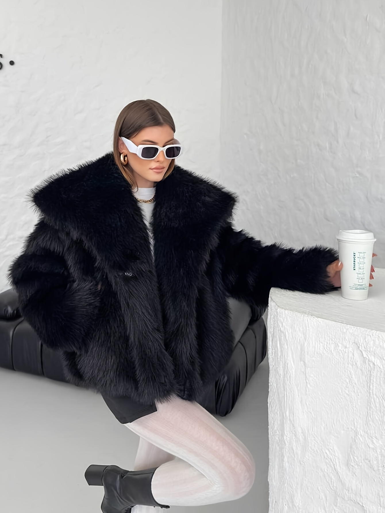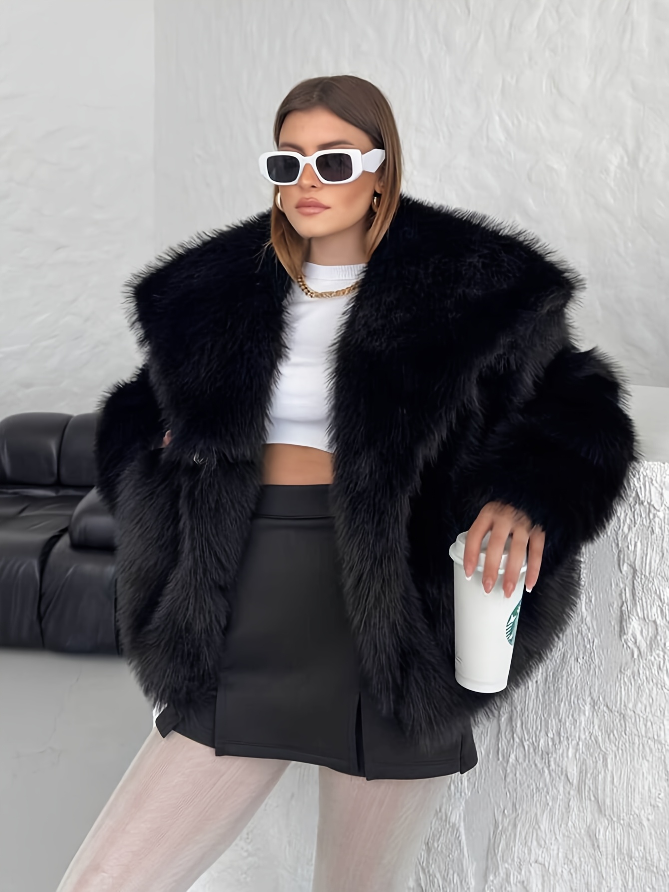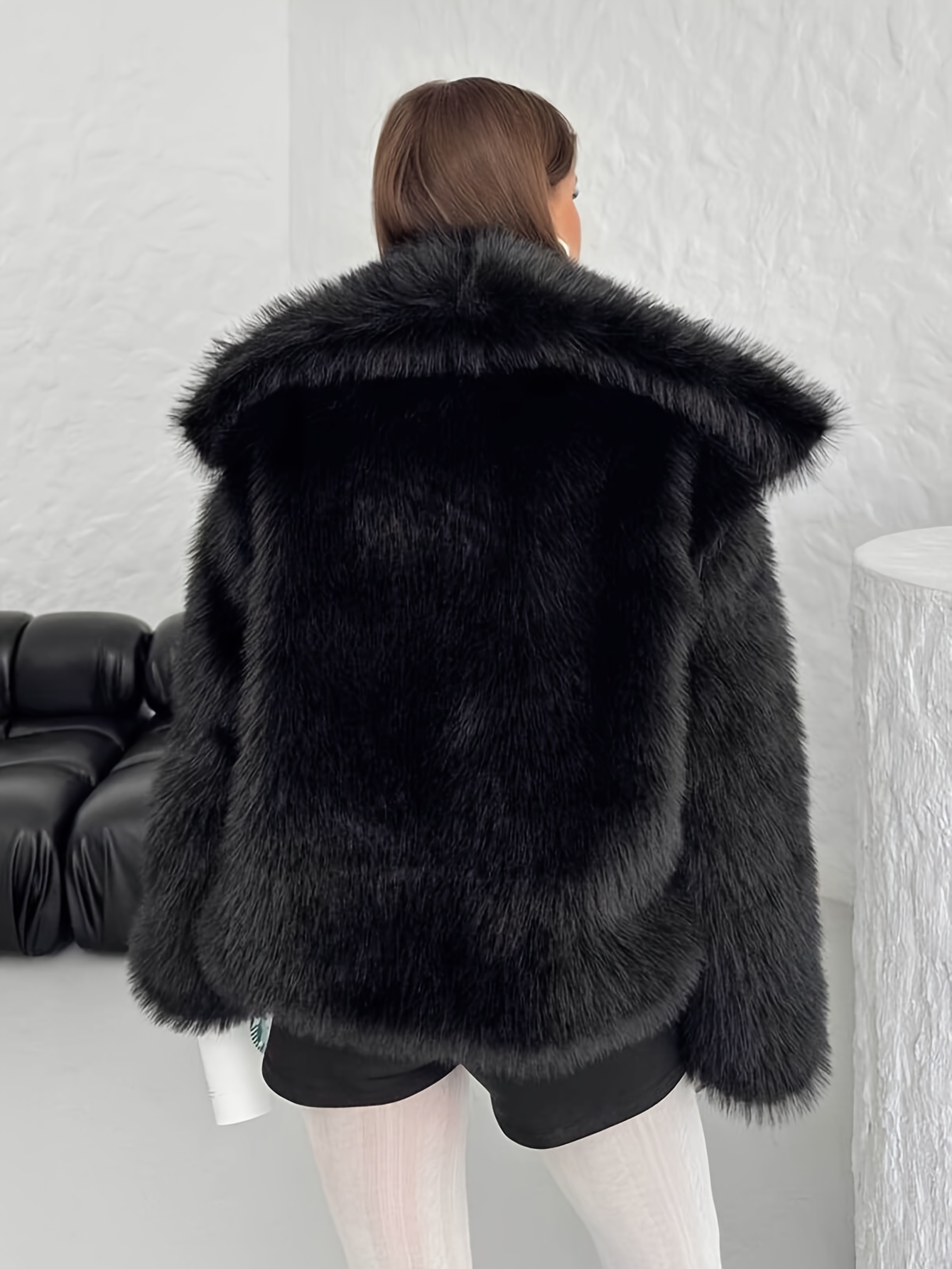 Women's Plus Size Elegant Faux Fur Coat - Plush Winter Jacket with Oversized Lapel Collar, Hand Washable Solid Color Outerwear for Fall & Winter, Ladies Winter Coats, Cold Weather Wear, Sophisticated Style, Soft Texture, Fashion Lovers, Seasonal Fashion, Cozy Texture, Fashionconscious Women