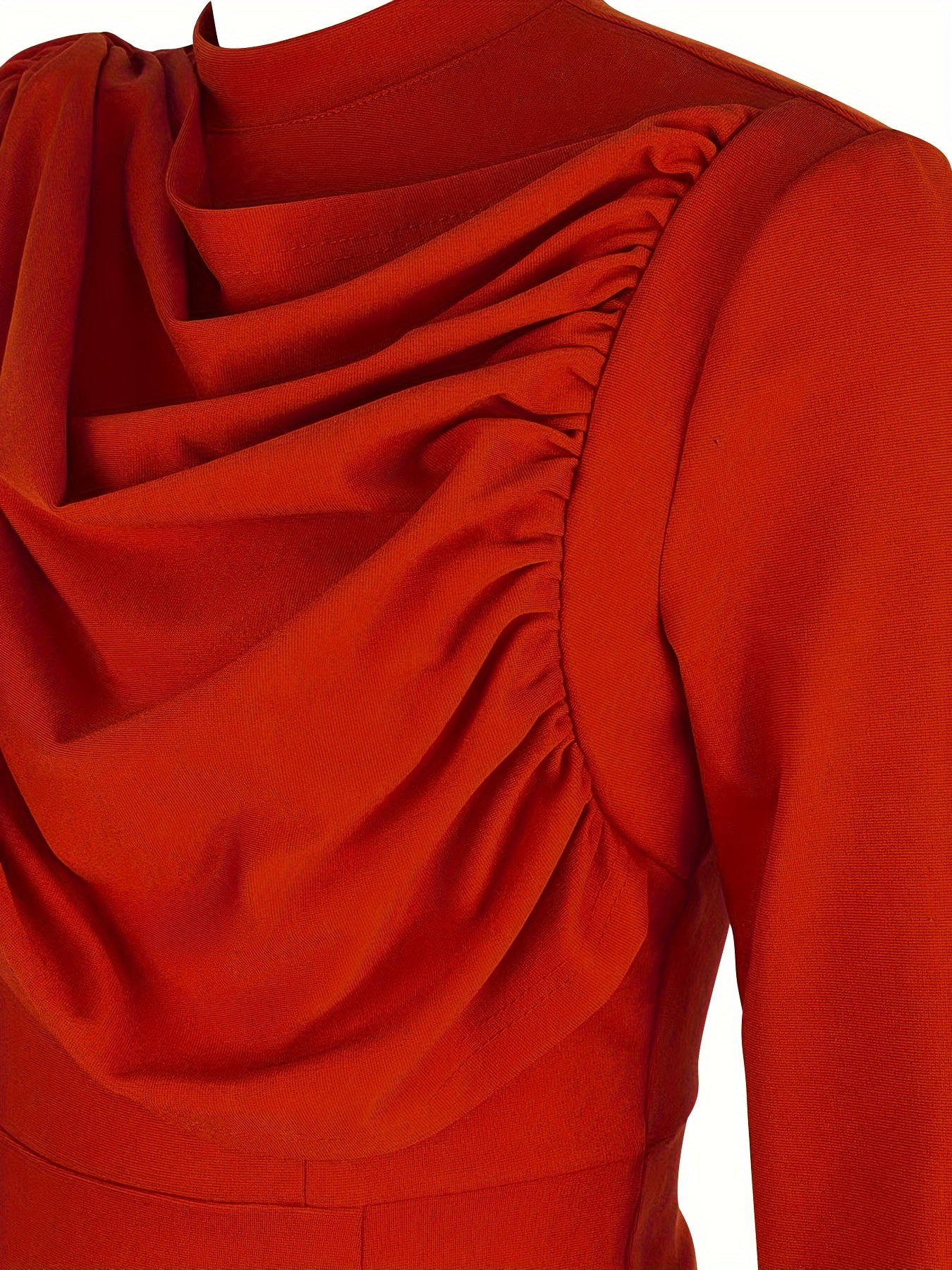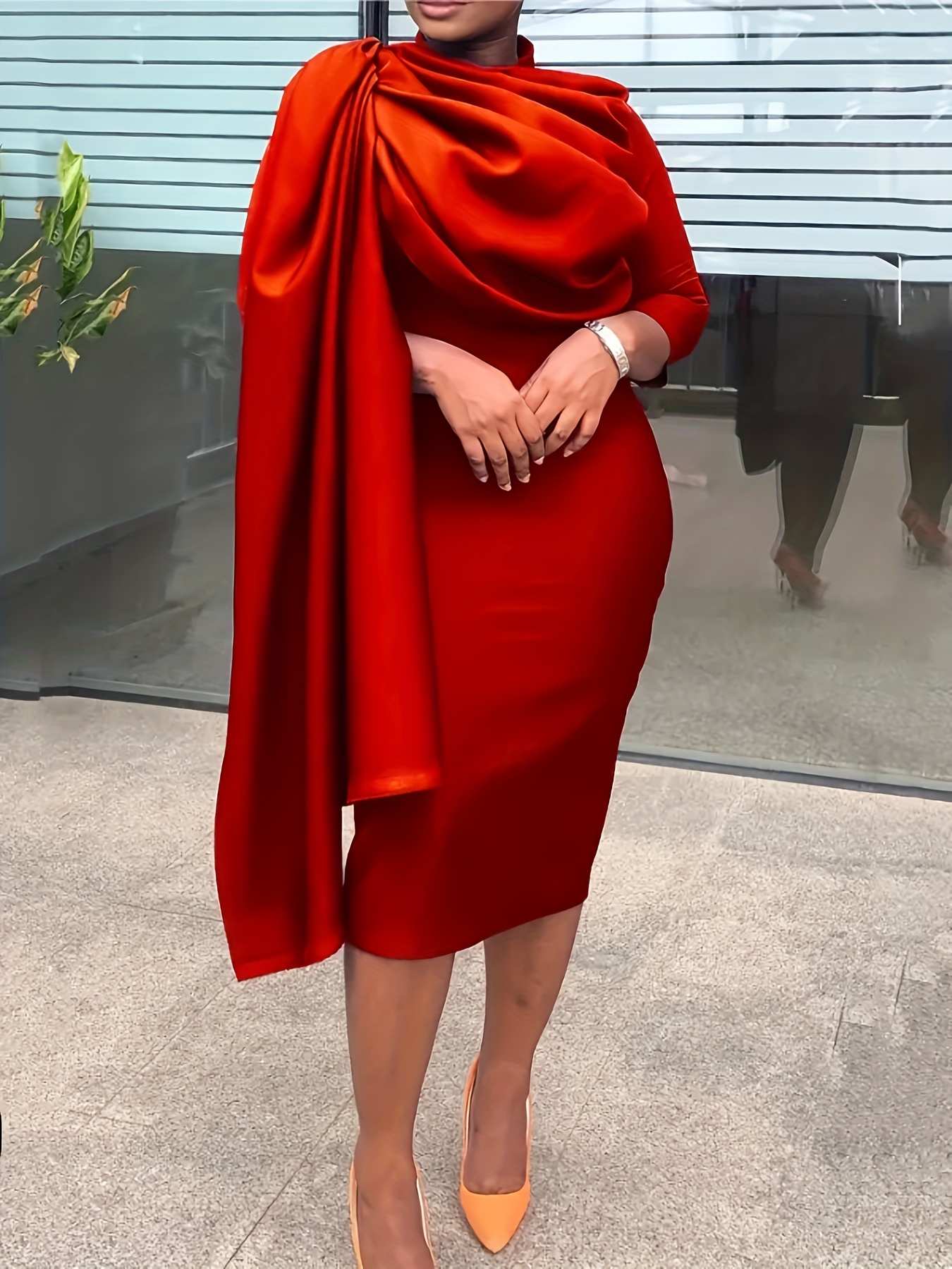 Solid Color Pleated Asymmetrical Dress, Elegant 3/4 Sleeve Bodycon Dress For Office & Work, Women's Clothing