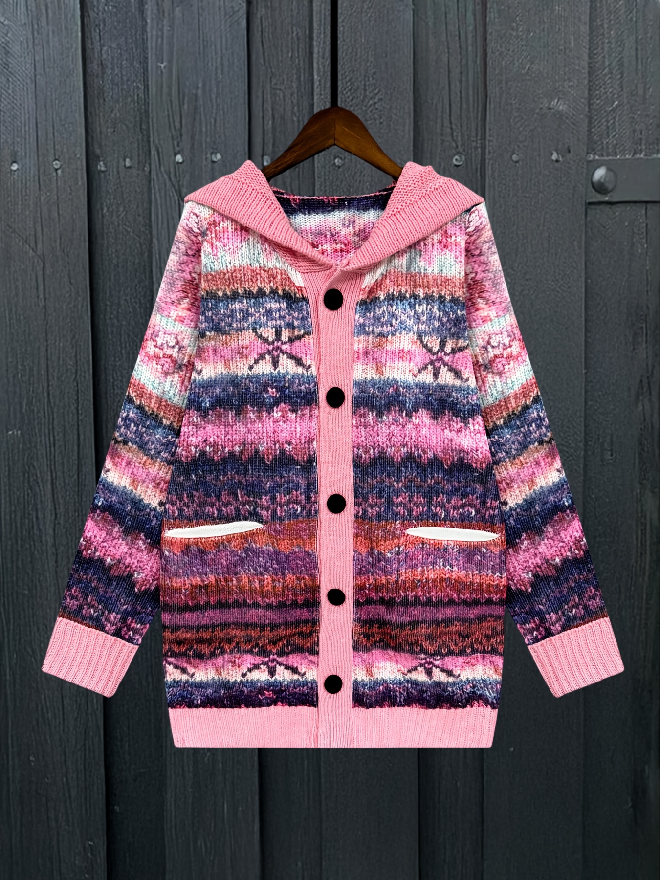 Women's Hooded Sweater - Pink, Loose Fit Long Sweater Coat with Side Pockets, Fall Winter Hooded Sweater for Everyday & Formal Outfits