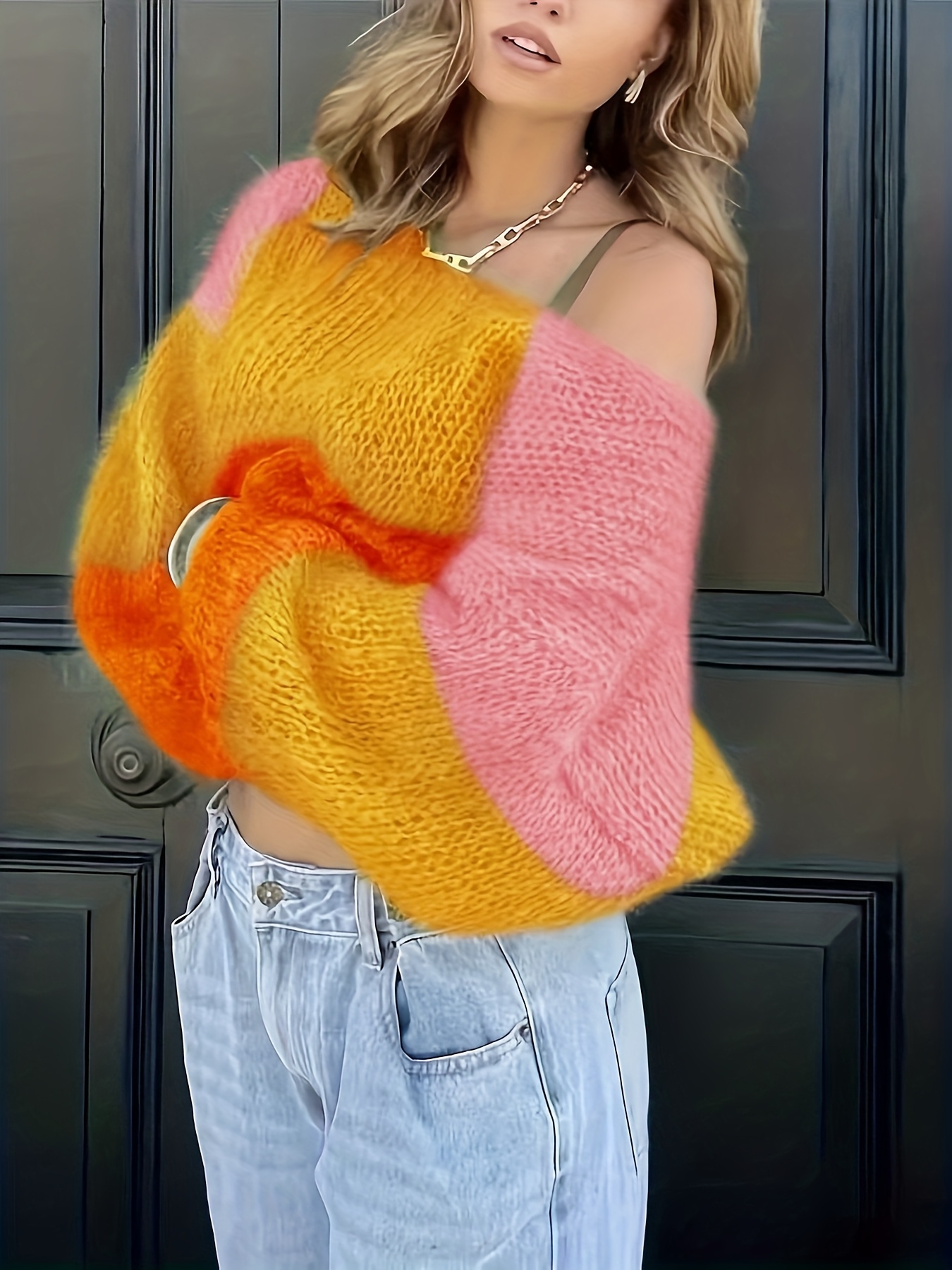 Women'S Elegant French-Inspired V-Neck Long Sleeve Cardigan - Gradient Green to Yellow, Open Front Design, Lightweight & Breathable for Spring/Fall, Perfect for Casual or Stylish Outfits, Spring Outerwear, Relaxed Fit, Soft Texture, Women Jumper And Sweater, Jumper Women Winter, Fall-autumn Clothe For Women, Pink Jumper, White Pink Fabric Strip, Off-shoulder Long Sleeve, Asymmetric Mustard Sweater, Winter For Women Outfit