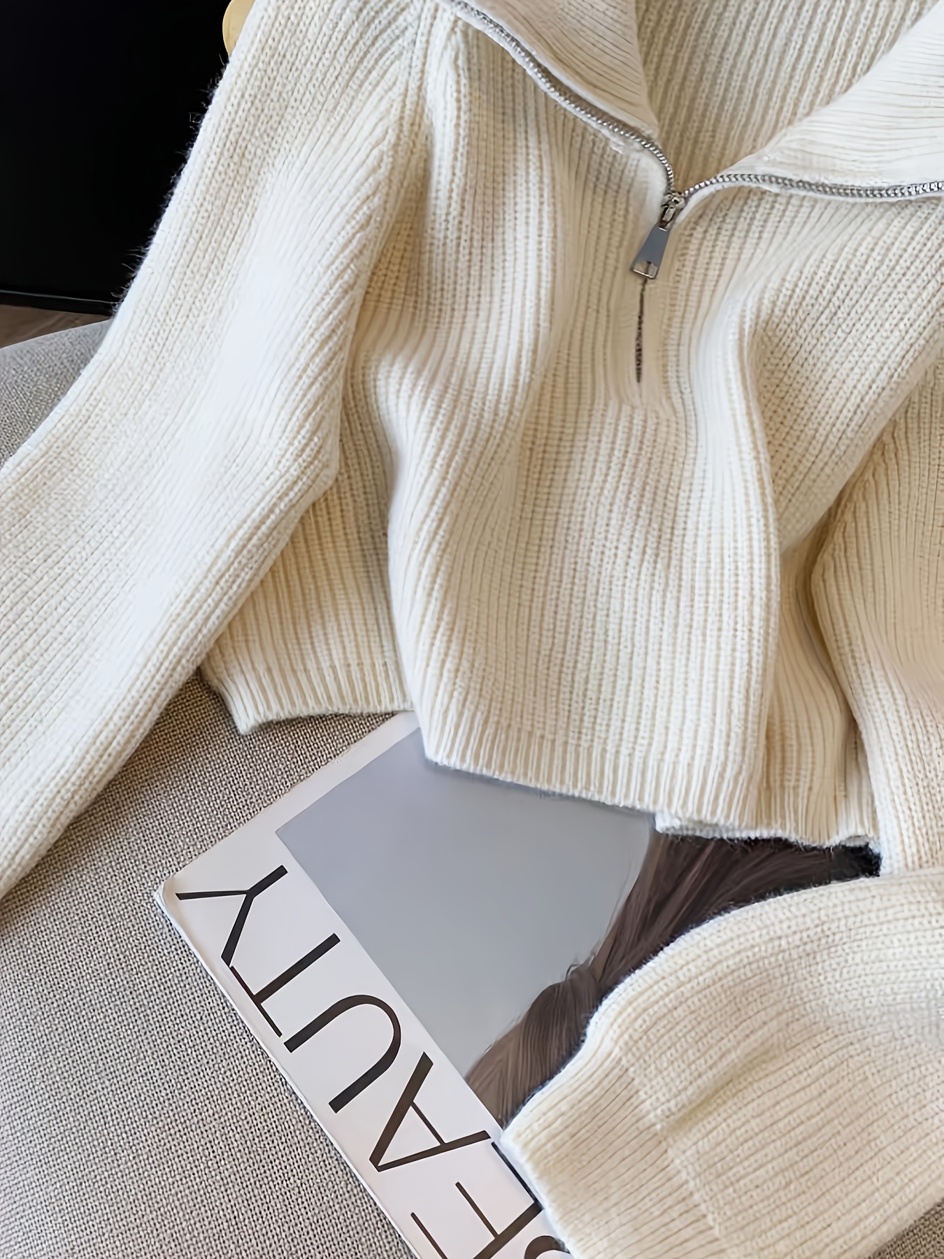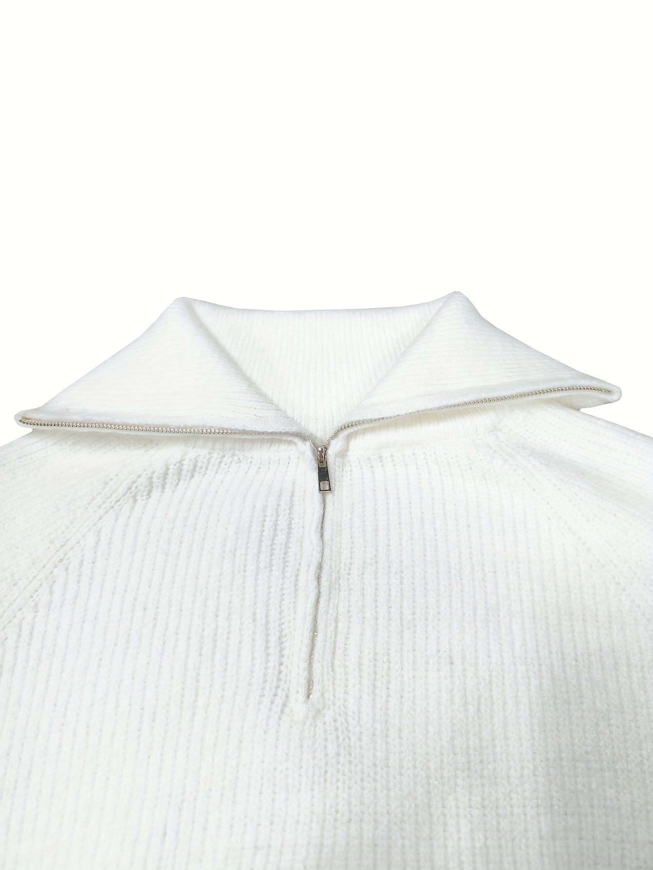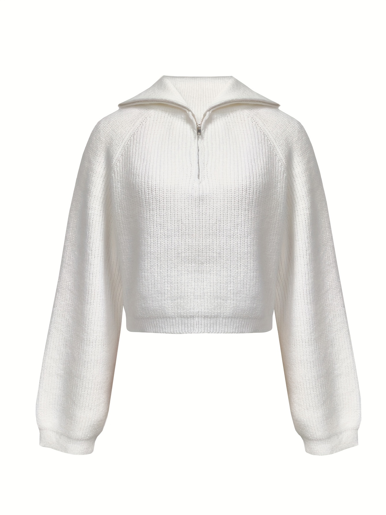 Women's Elegant Ribbed Zip-Up Sweater - Long Sleeve Stand Collar Short Length Slim Fit, Solid Color All-Season Versatile Layering Piece