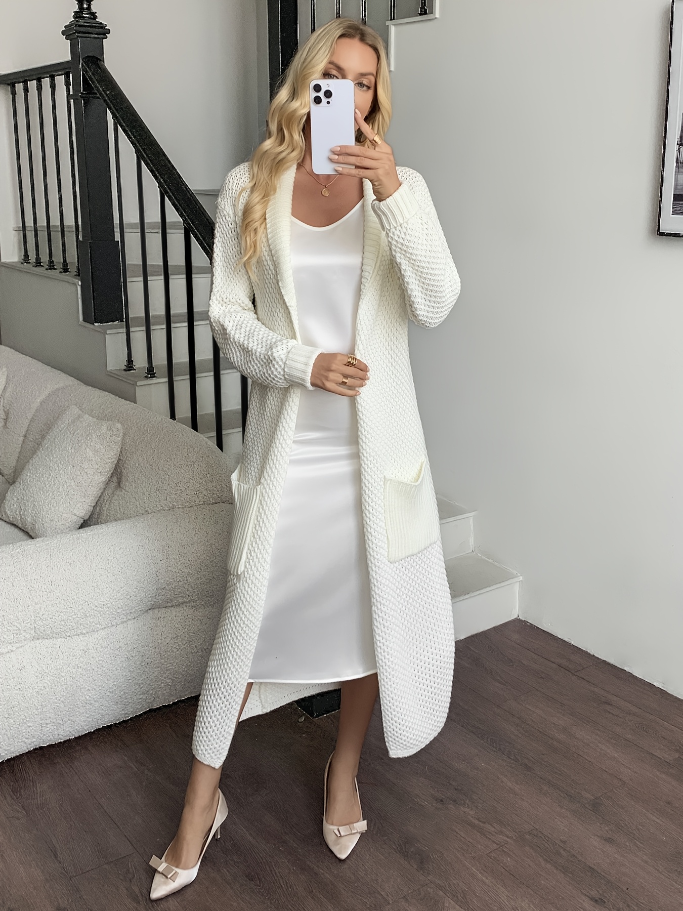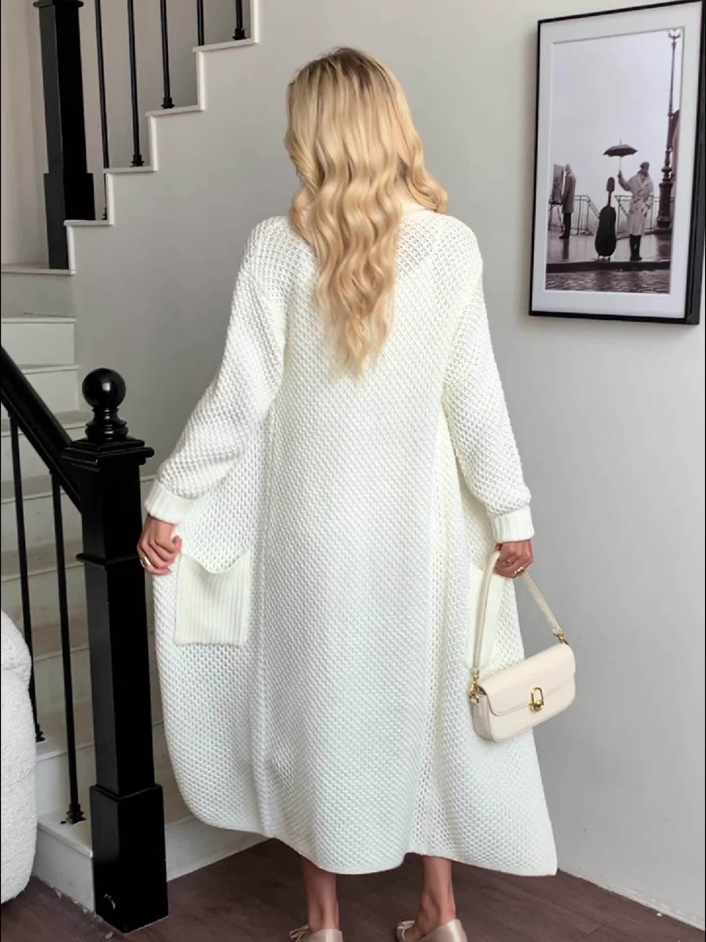 Women'S Long Cardigan - Elegant Lapel Collar Sweater, All-Season Chic Sweater for Everyday & Formal Outfits, Office, Parties - Women'S Clothing, Ladies Sweaters, Party Attire, Sophisticated Style, Durable Knitwear, Office Attire, Classic Design