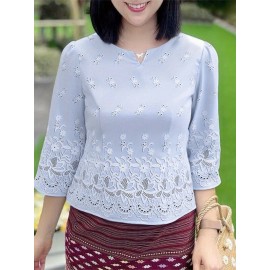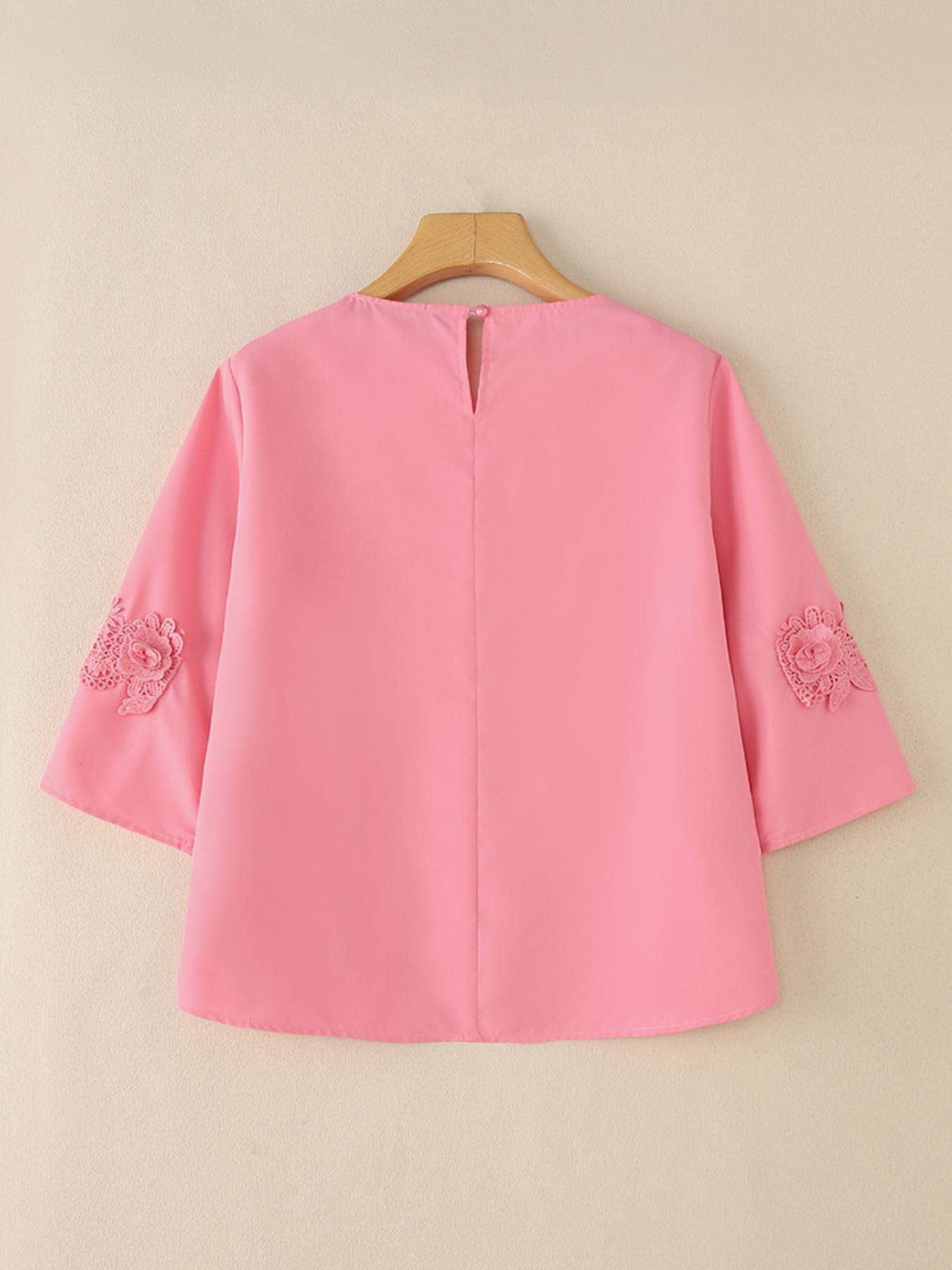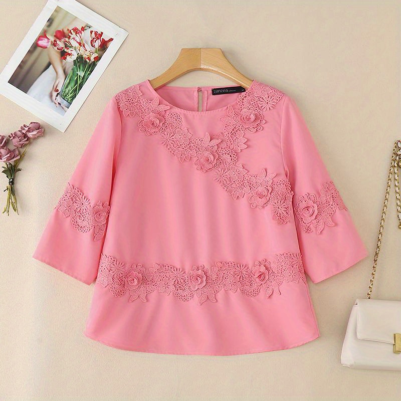 Plus Size, ZANZEA Women's Plus Size Elegant Blouse - 3/4 Sleeve Crew Neck Baggy Shirt, Lightweight All-Season Wedding Guest Dress-like Top, Machine Washable White Collar Blouse for Office, Party & Casual Attire (Plus Size Friendly)