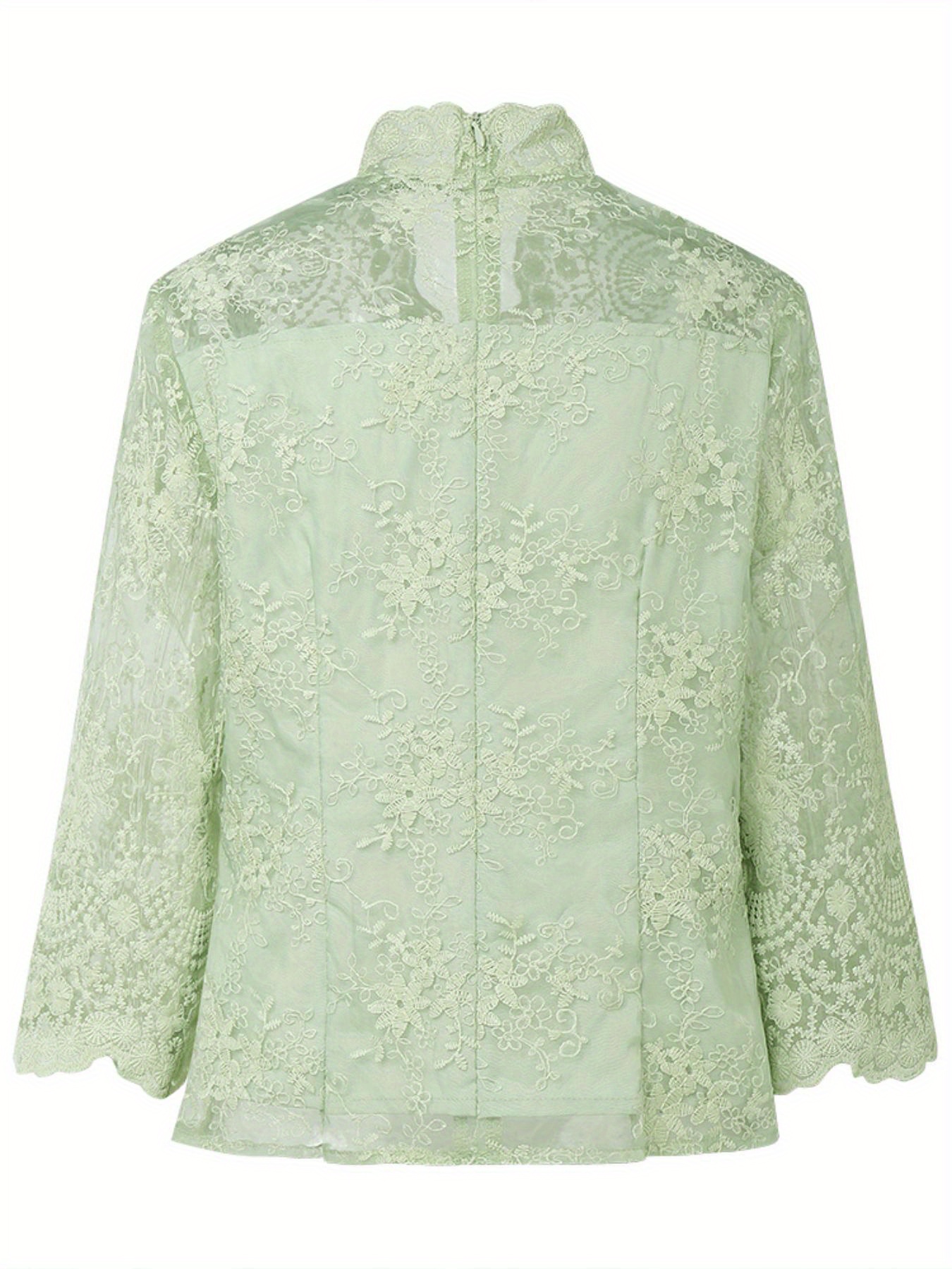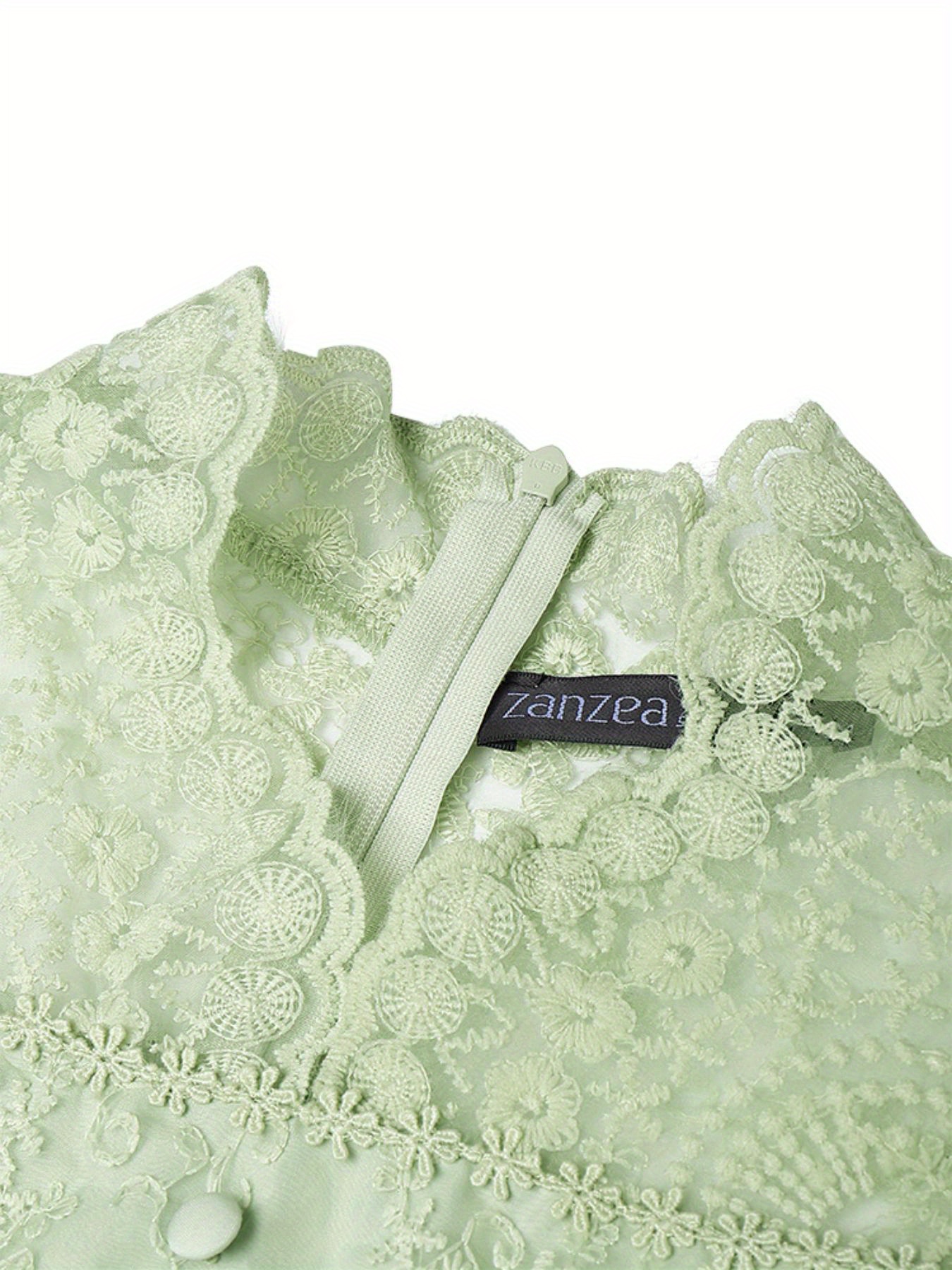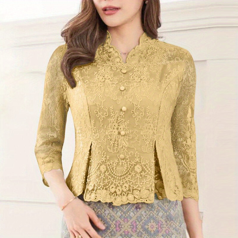 [Wedding & Party] Plus Size, ZANZEA Women's Plus Size Elegant Lace Patchwork Blouse - 3/4 Sleeve Wedding & Party Shirt with Front Button Closure, /Korean Inspired A-Line Lightweight Top, Machine Washable Golden Lace Jacket-like Blouse for Year-Round