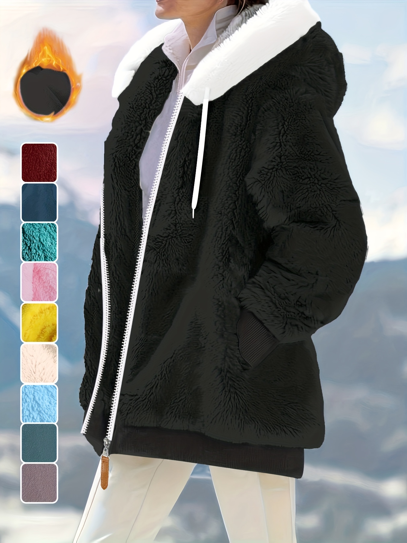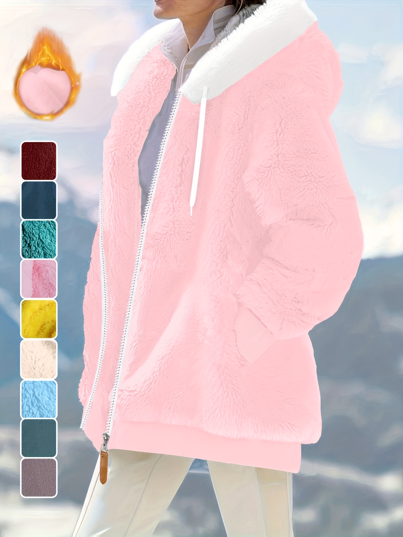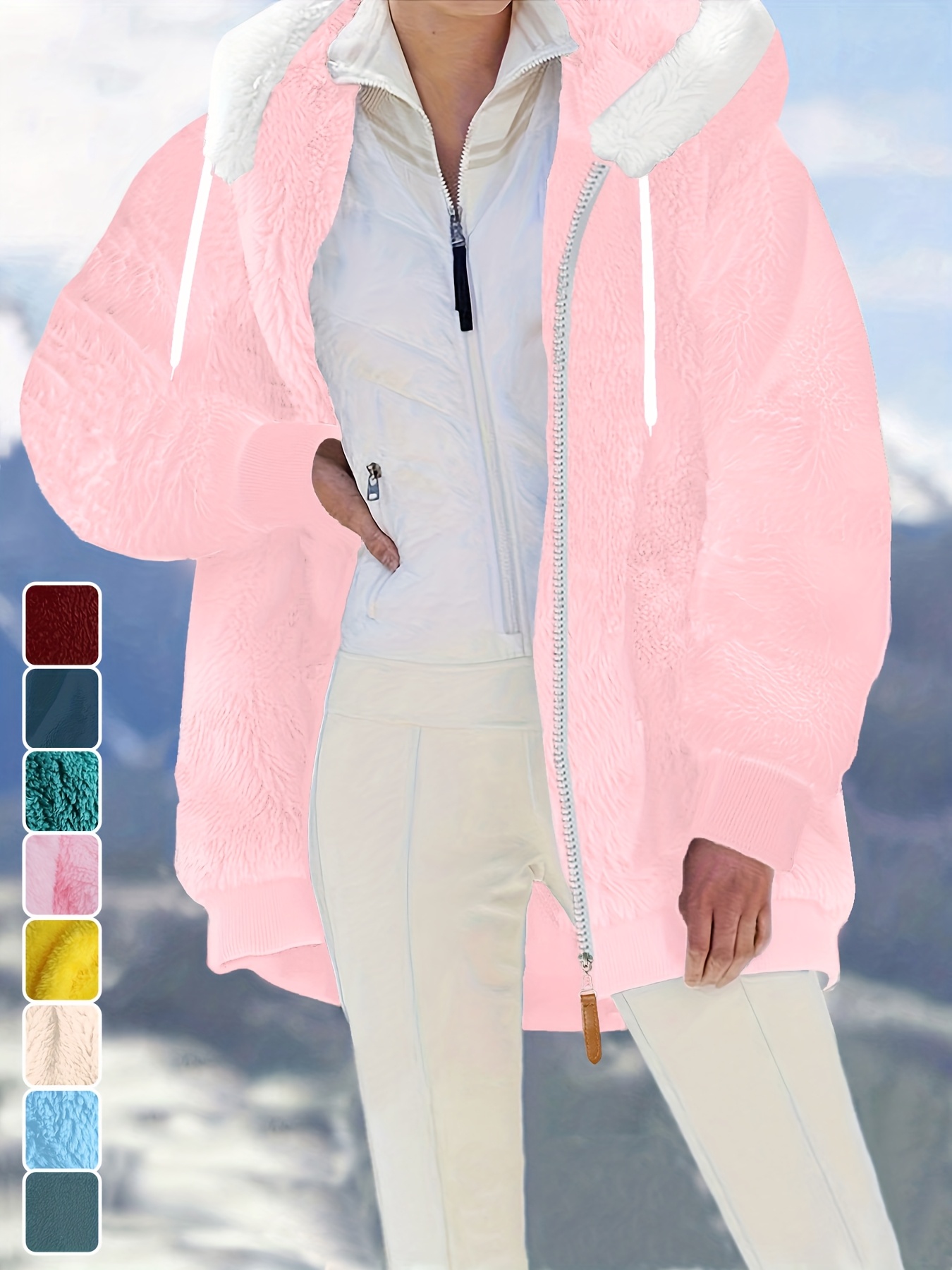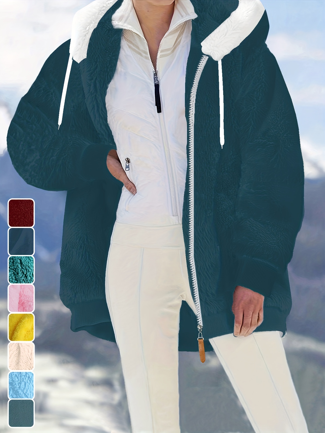 Plus Size - Women'S Cozy Fleece-Lined Hooded Jacket - Oversized Zip-Up with Drawstring, White, All-Season Comfort, Casual Style, Casual Winter Wear | Oversized Hooded Jacket | Zippered Hoodie, Winter Hoodie