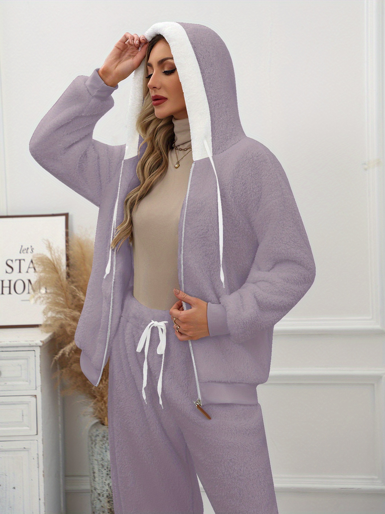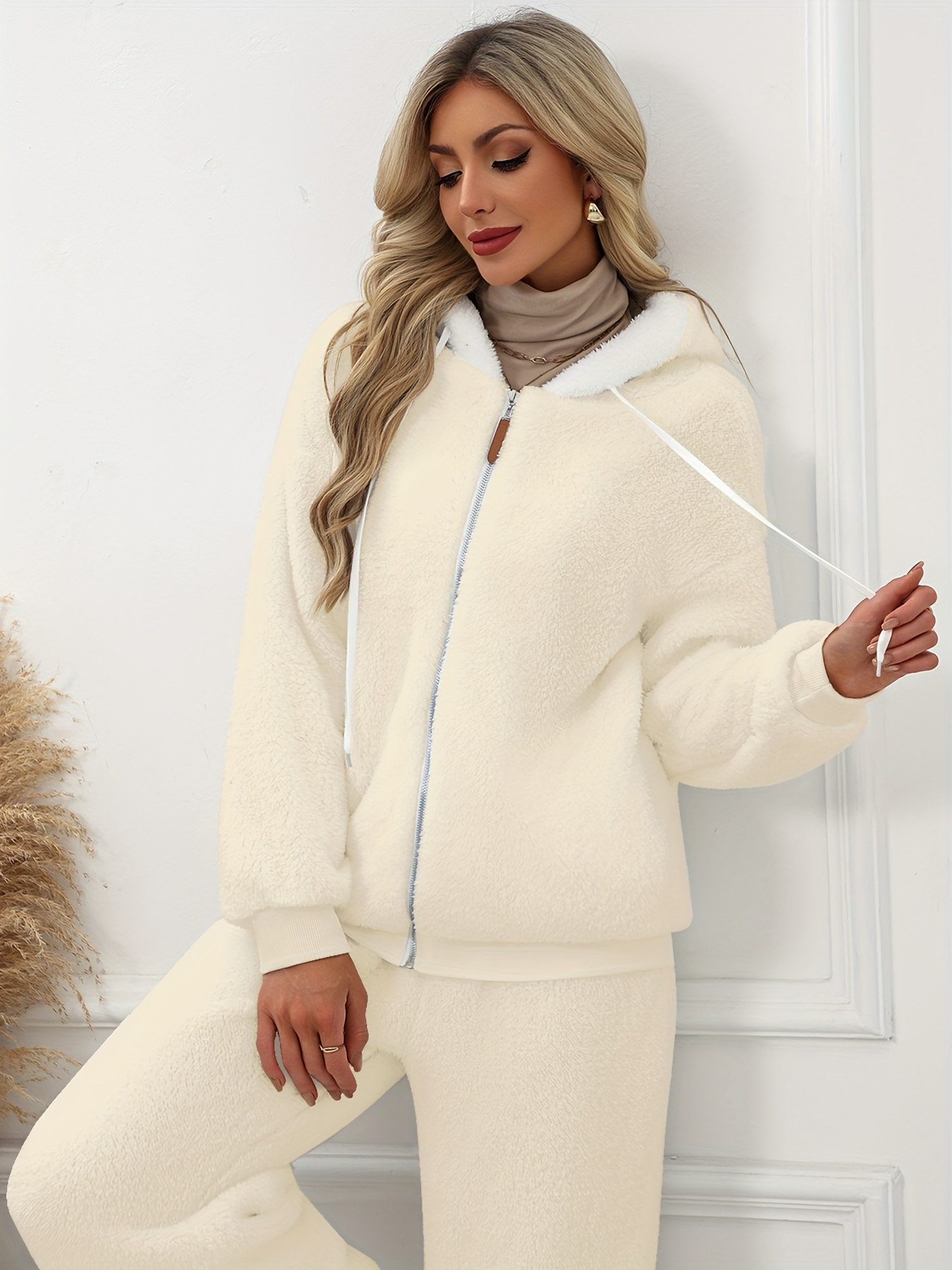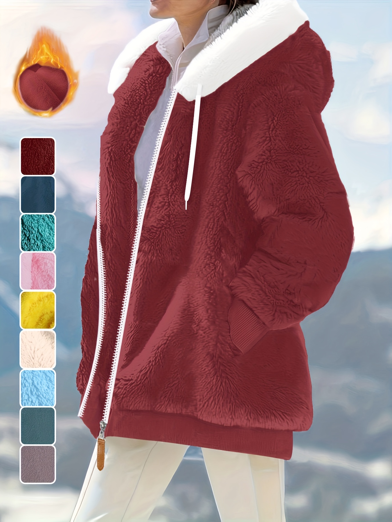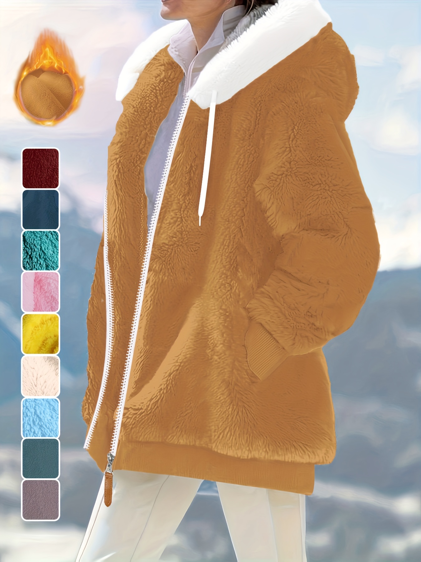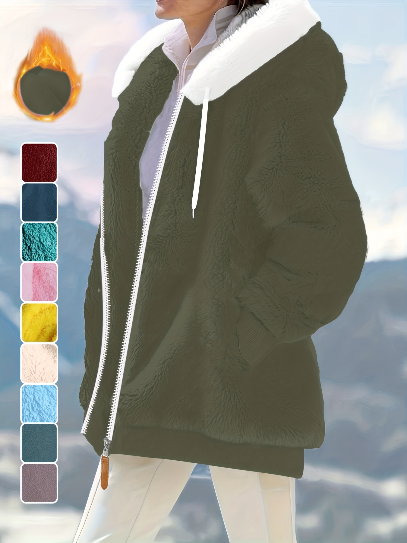 Plus Size - Women'S Cozy Fleece-Lined Hooded Jacket - Oversized Zip-Up with Drawstring, White, All-Season Comfort, Casual Style, Casual Winter Wear | Oversized Hooded Jacket | Zippered Hoodie, Winter Hoodie