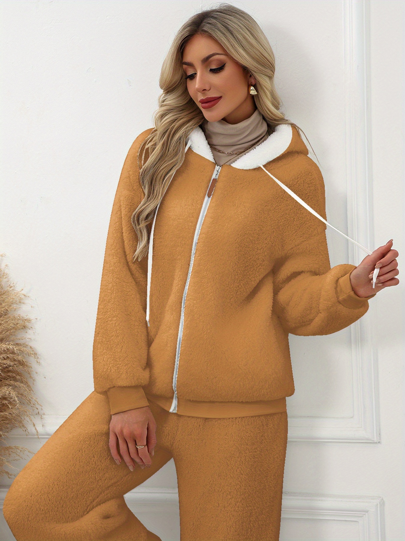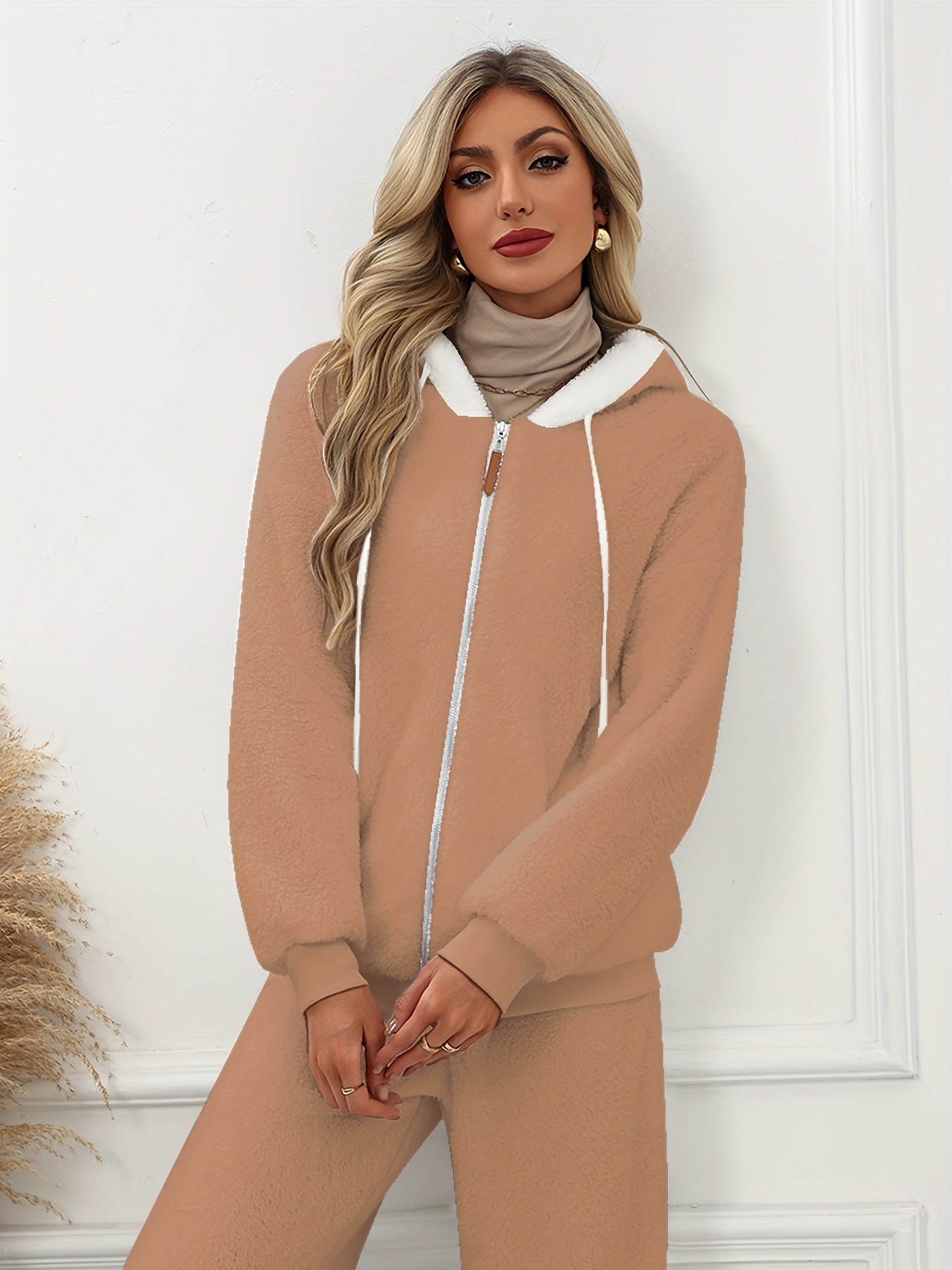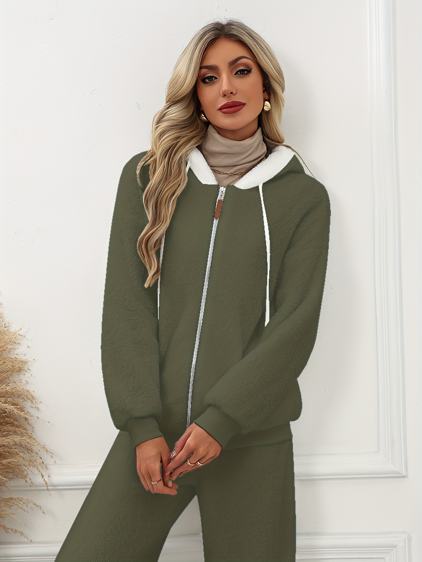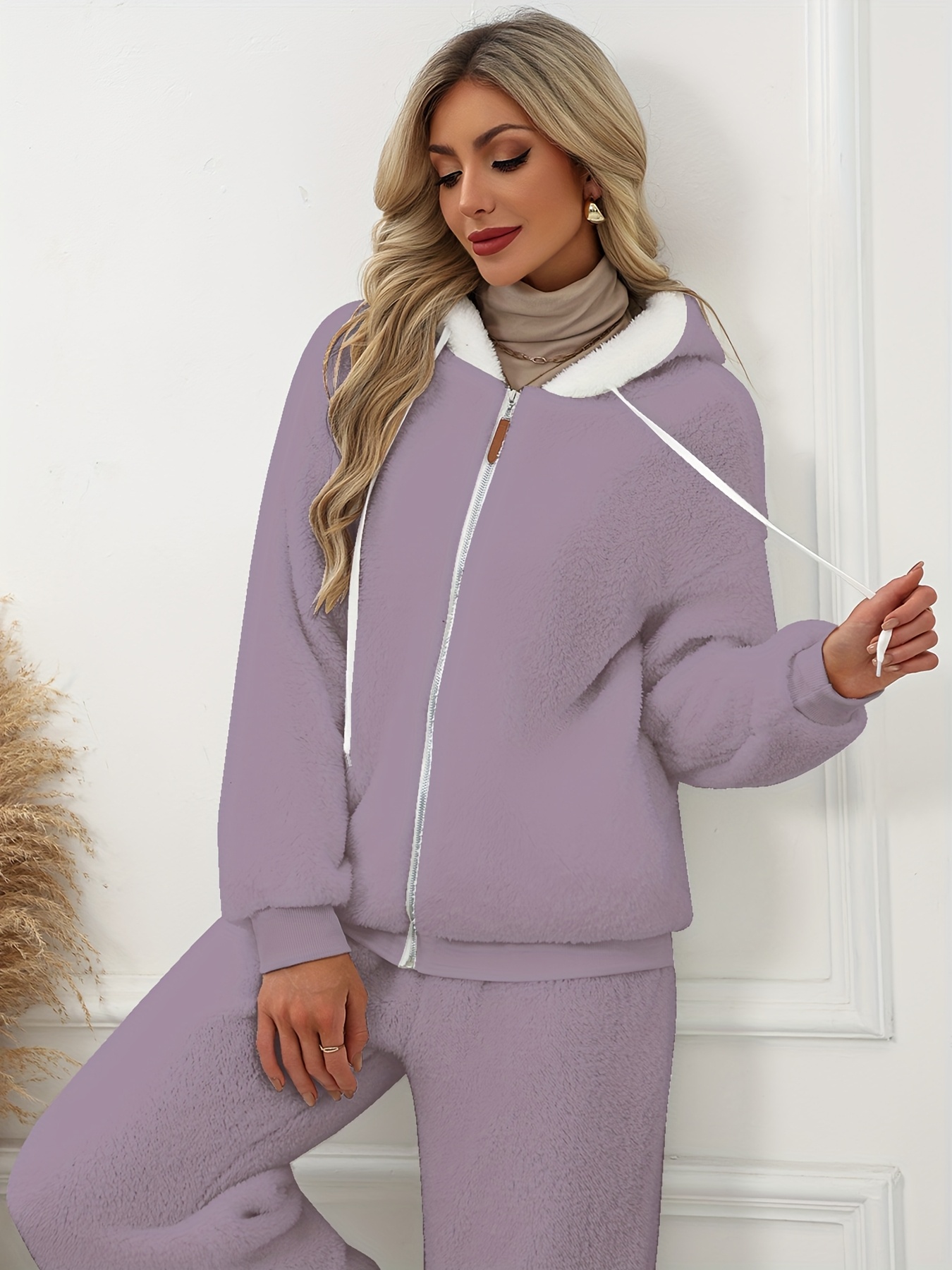 Plus Size - Women'S Cozy Fleece-Lined Hooded Jacket - Oversized Zip-Up with Drawstring, White, All-Season Comfort, Casual Style, Casual Winter Wear | Oversized Hooded Jacket | Zippered Hoodie, Winter Hoodie