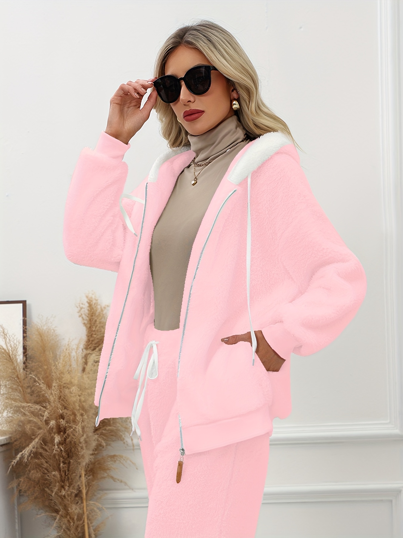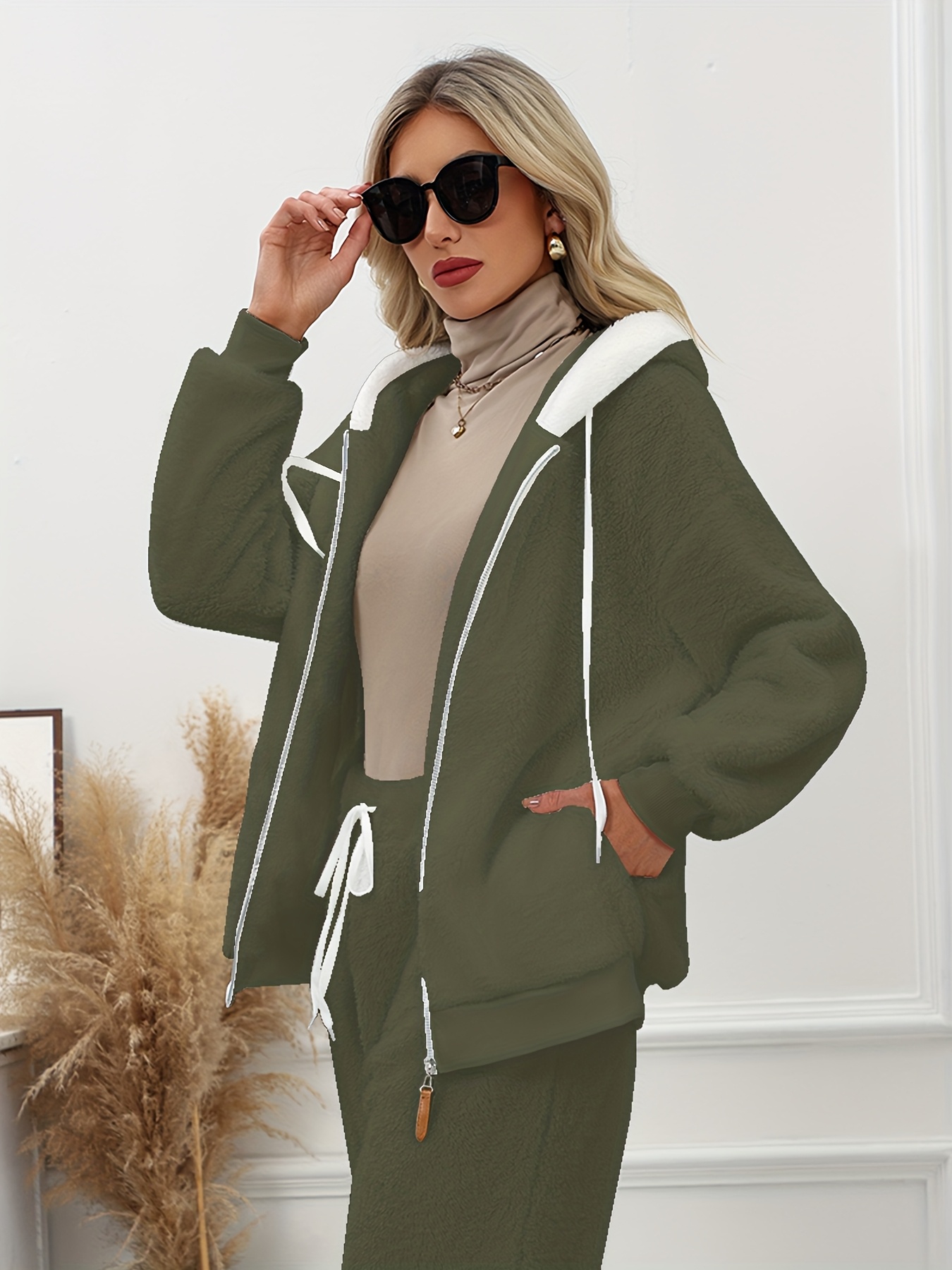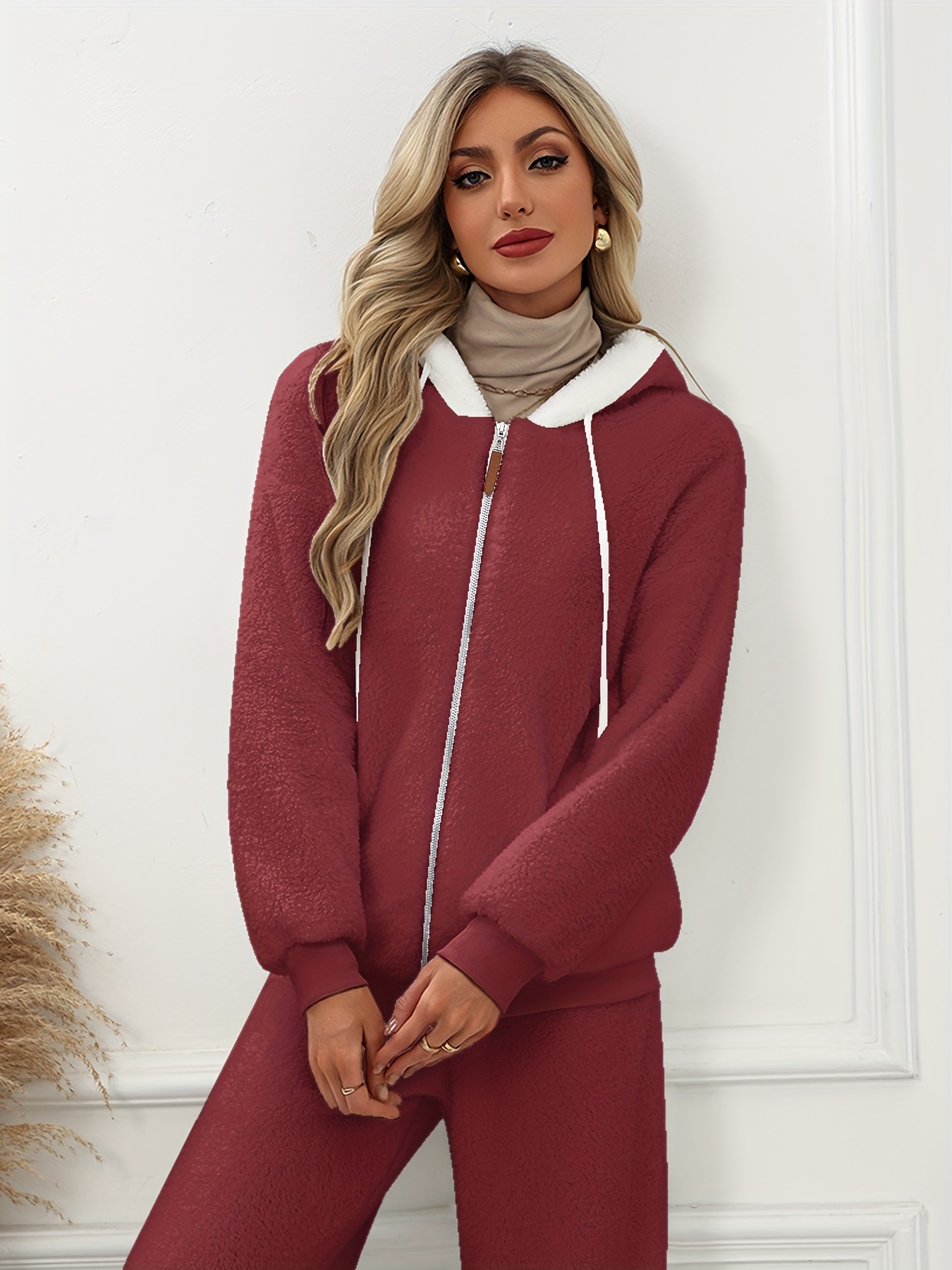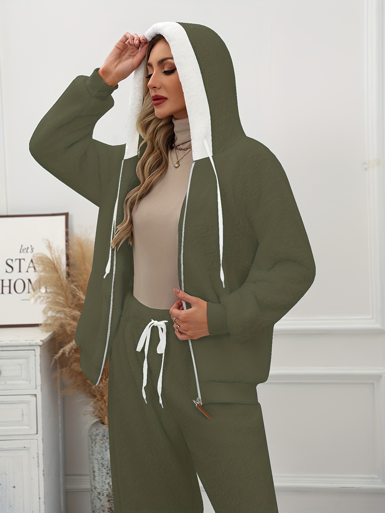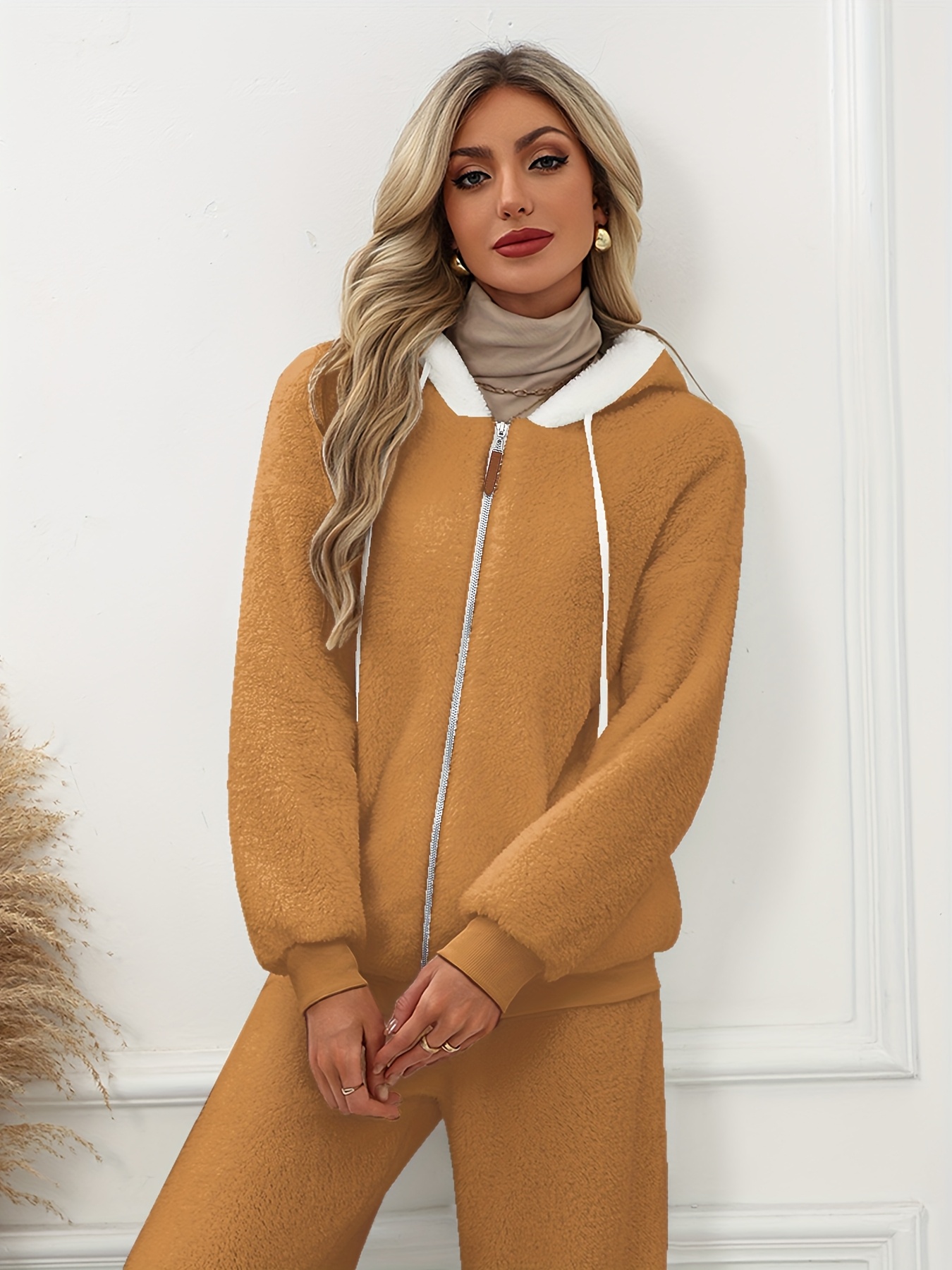 Plus Size - Women'S Cozy Fleece-Lined Hooded Jacket - Oversized Zip-Up with Drawstring, White, All-Season Comfort, Casual Style, Casual Winter Wear | Oversized Hooded Jacket | Zippered Hoodie, Winter Hoodie