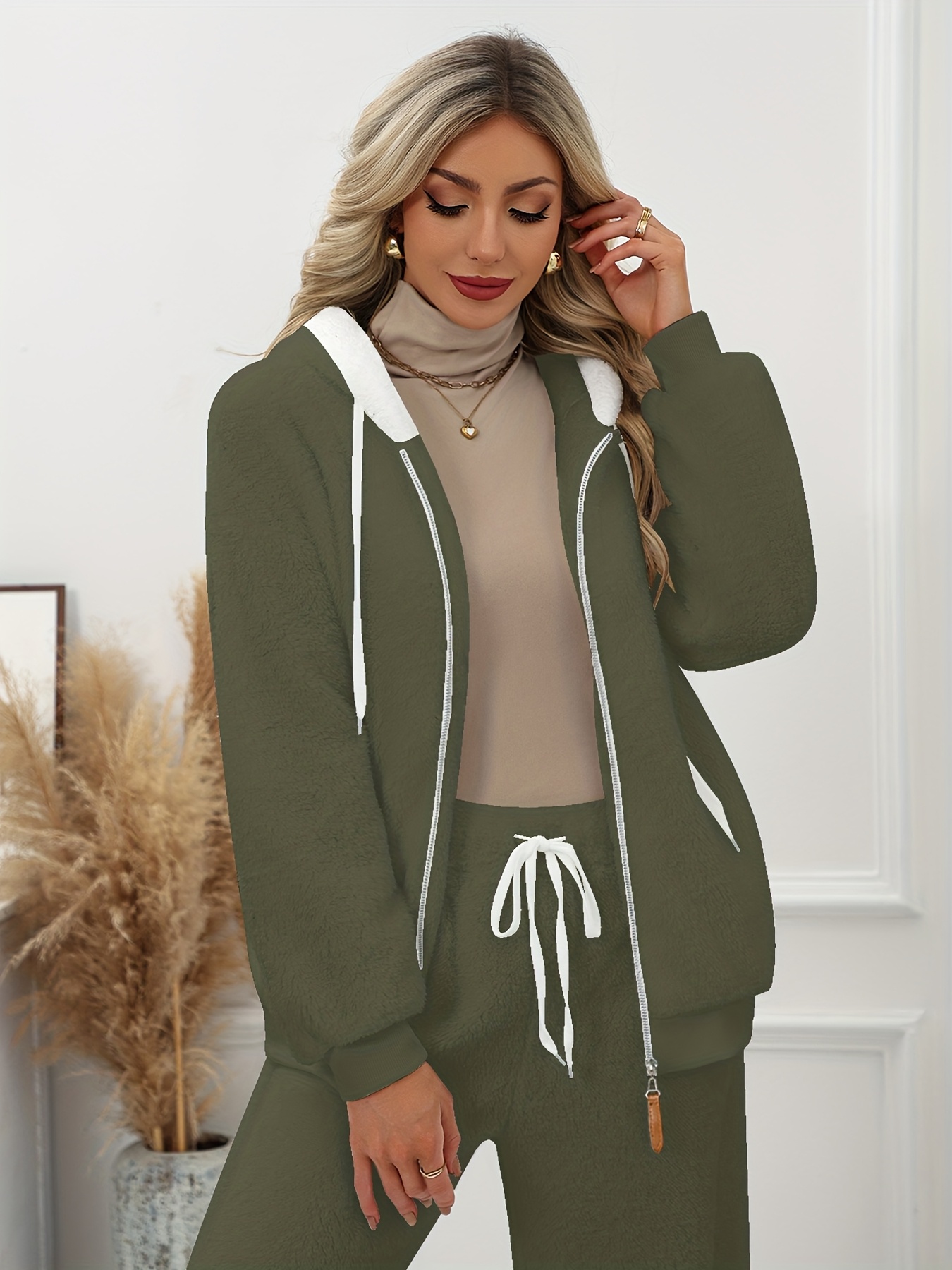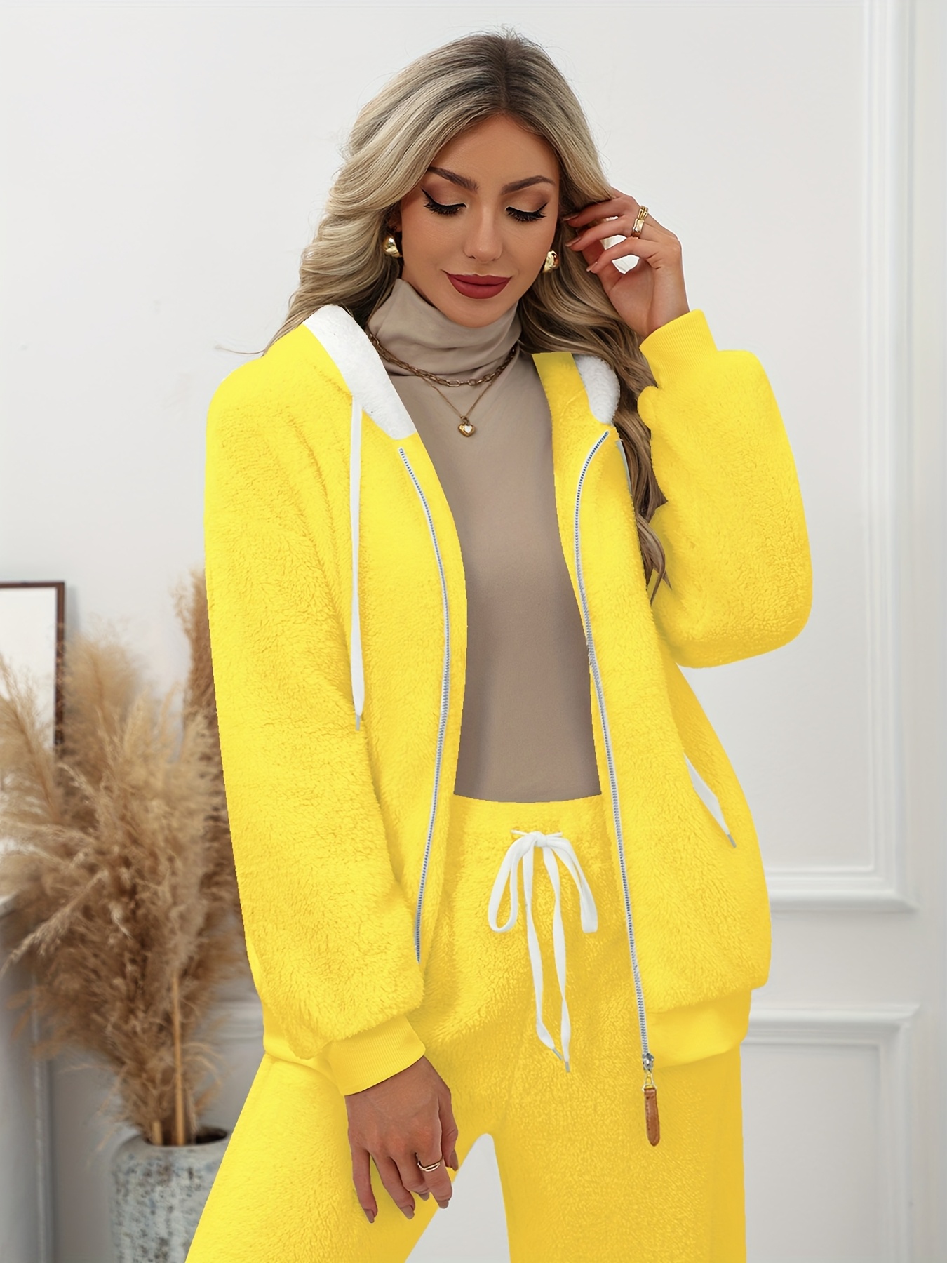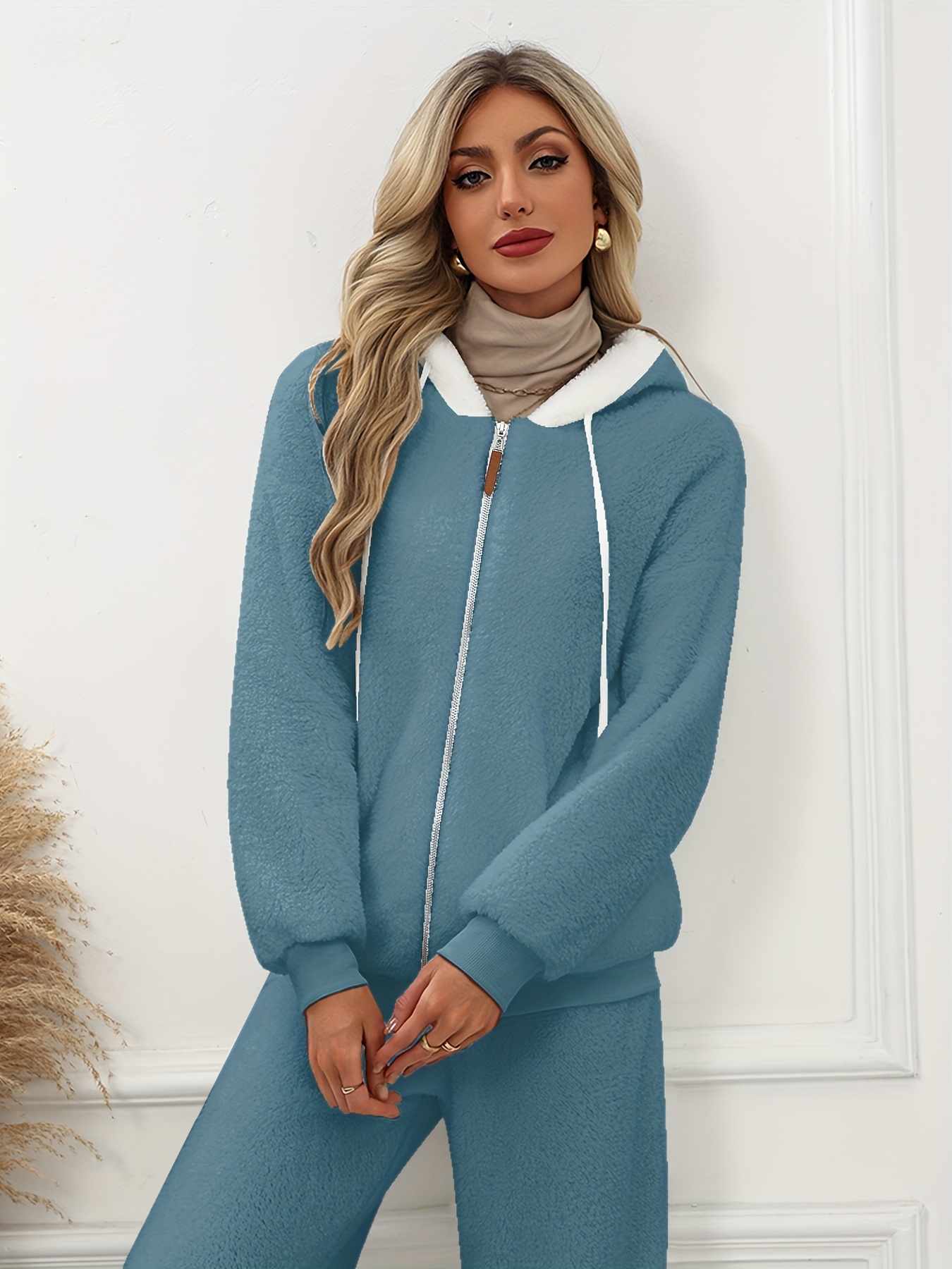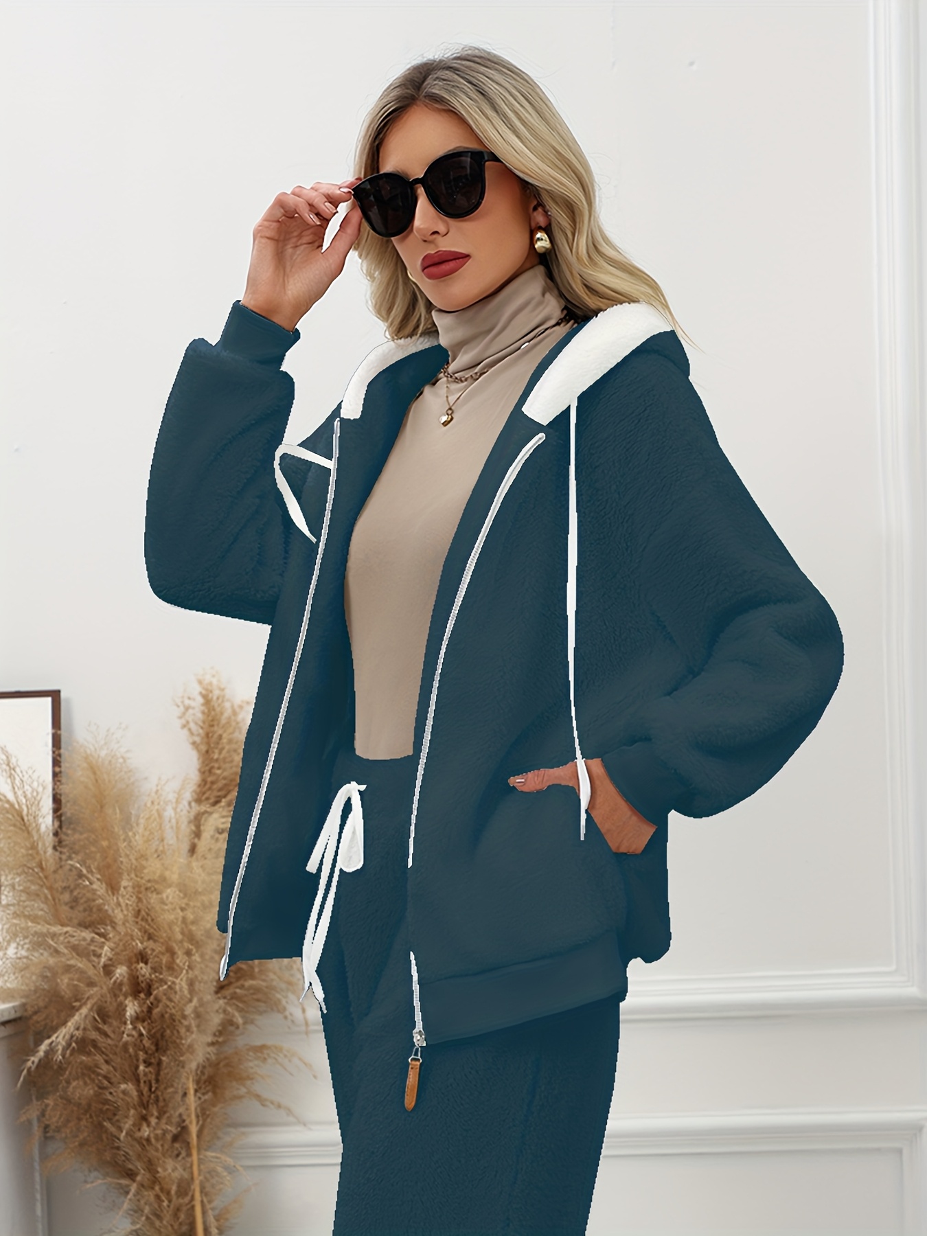 Plus Size - Women'S Cozy Fleece-Lined Hooded Jacket - Oversized Zip-Up with Drawstring, White, All-Season Comfort, Casual Style, Casual Winter Wear | Oversized Hooded Jacket | Zippered Hoodie, Winter Hoodie