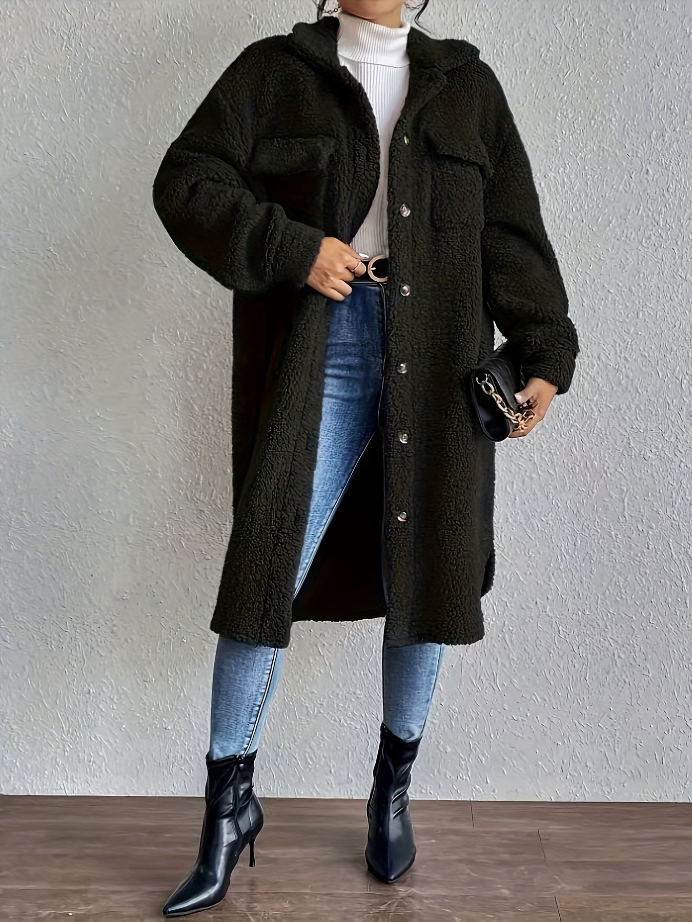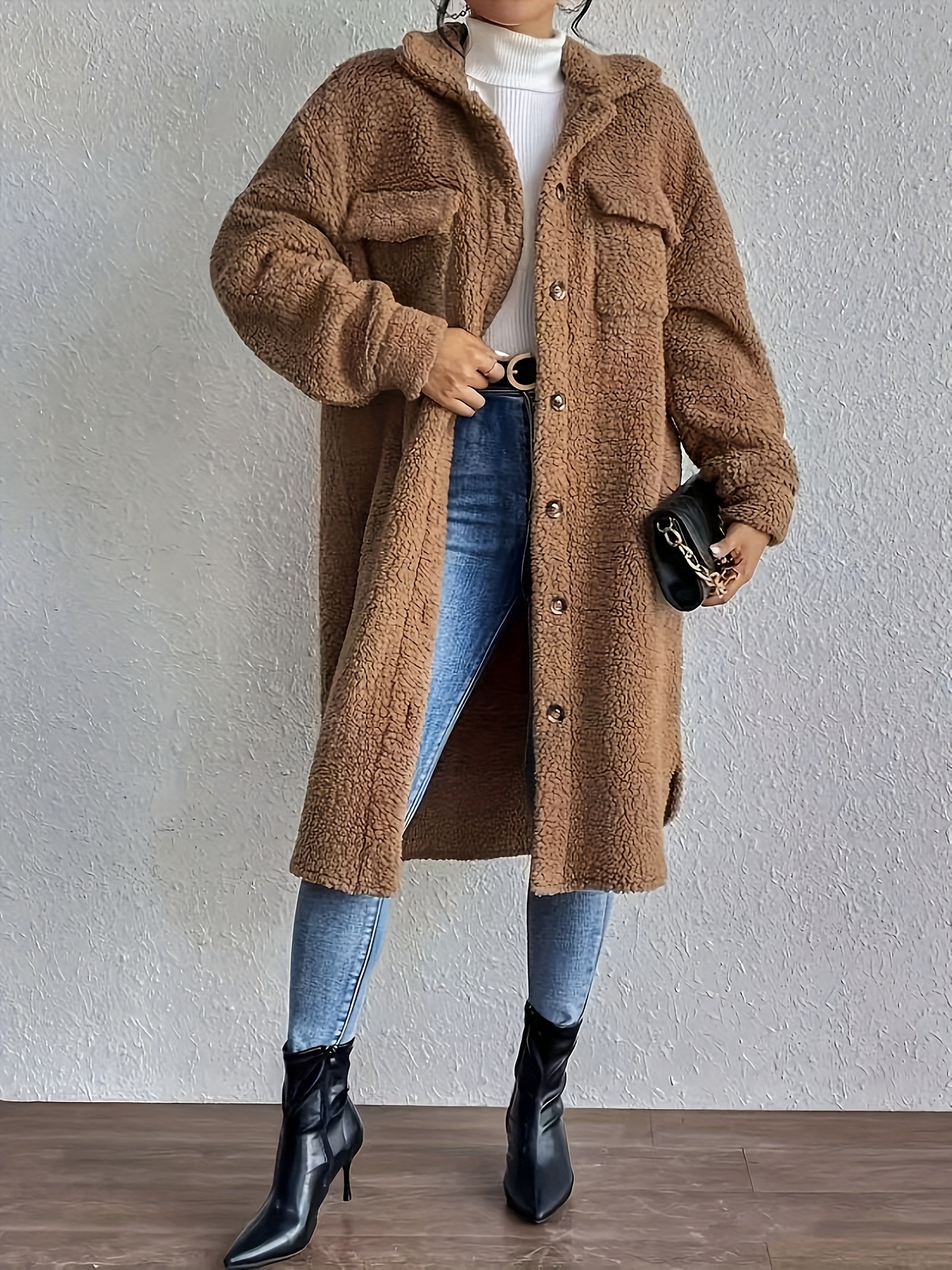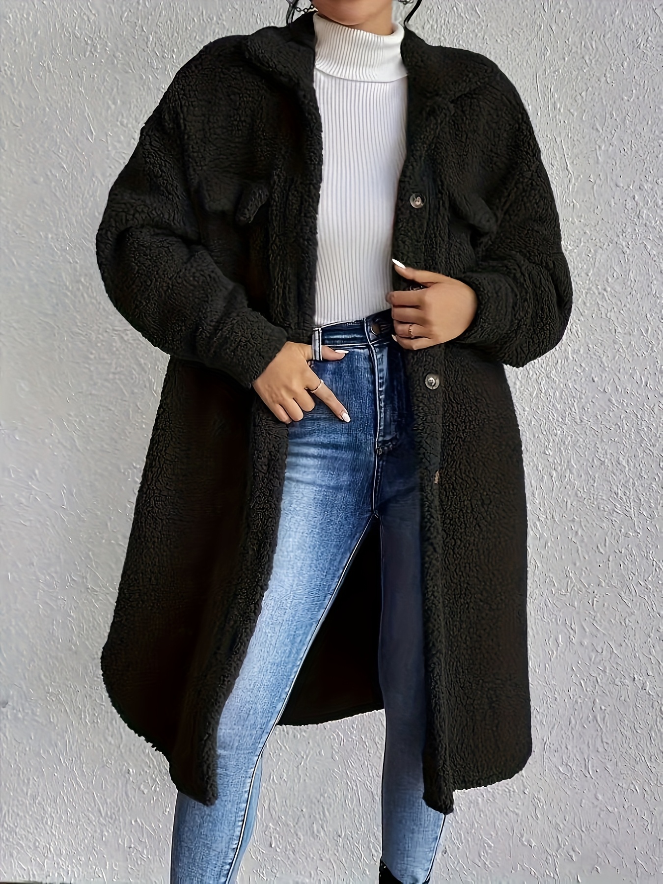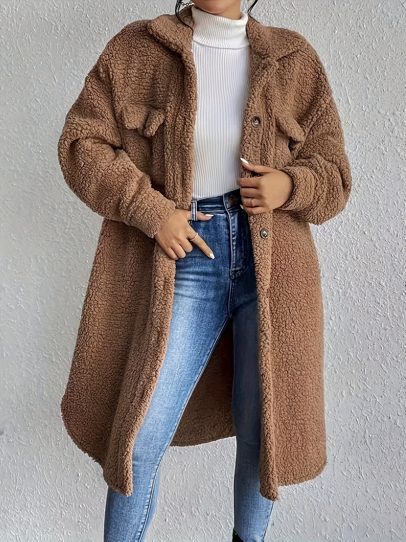 Plus Size, Women's Plus Size Oversized Faux-Fur Collar Lapel Coat - Elegant Winter Jacket with Lapel Collar & Pockets, Notch Lapel Button-Front Blazer, Machine Washable Large Coat for Fall/Winter, Casual & Formal Wear (Teddy Bear Style) - Warm