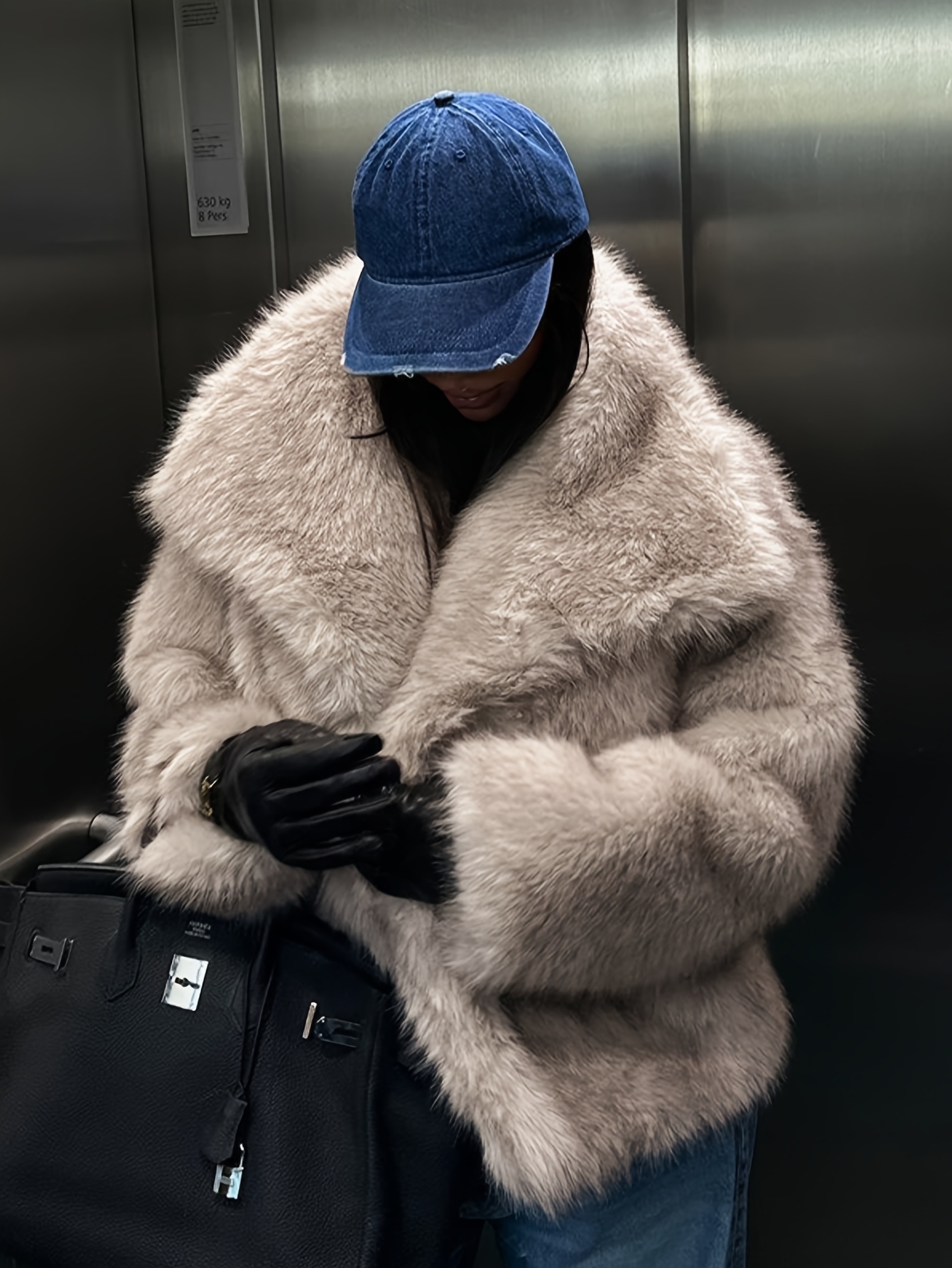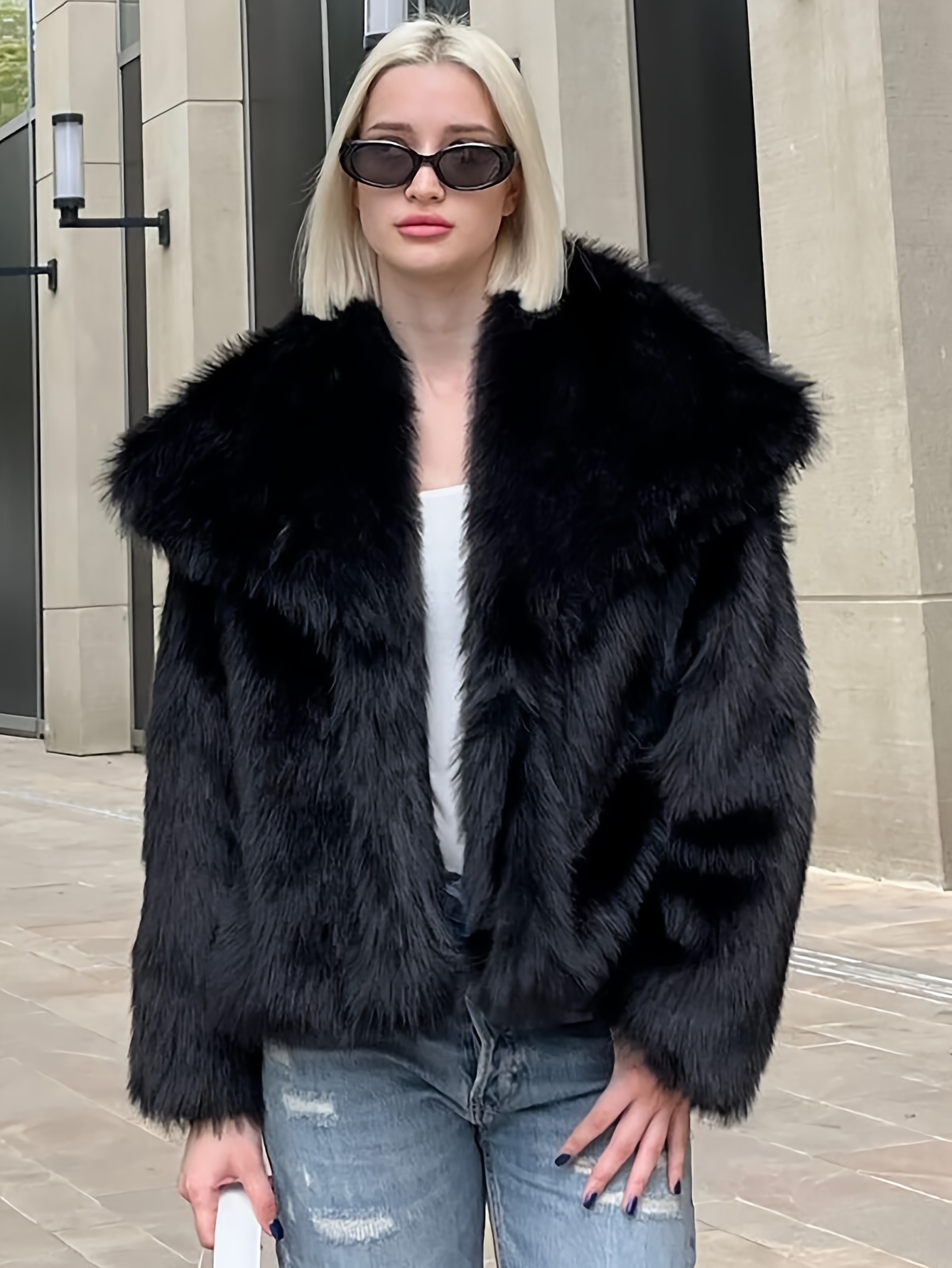 Women's Plus Size Elegant Faux Fur Coat - Plush Winter Jacket with Oversized Lapel Collar, Hand Washable Solid Color Outerwear for Fall & Winter, Ladies Winter Coats, Cold Weather Wear, Sophisticated Style, Soft Texture, Fashion Lovers, Seasonal Fashion, Cozy Texture, Fashionconscious Women
