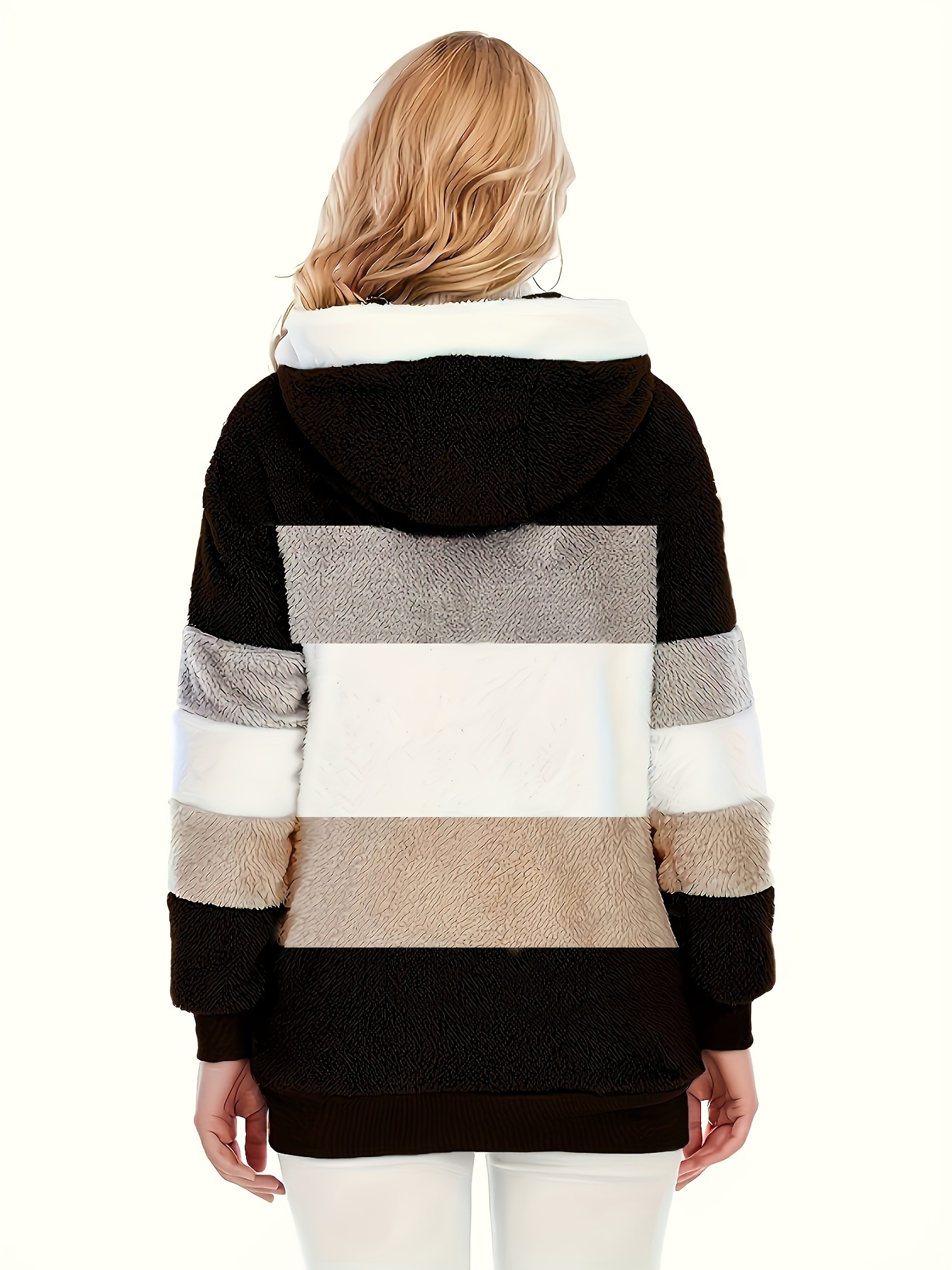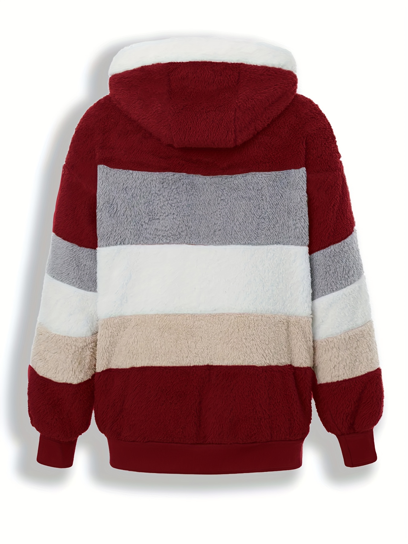 Plus Size Striped Fuzzy Hooded Coat - Soft, Warm, and Cozy Long Sleeve Zipper Coat for Fall and Winter - Women's Casual Outerwear for Cold Weather