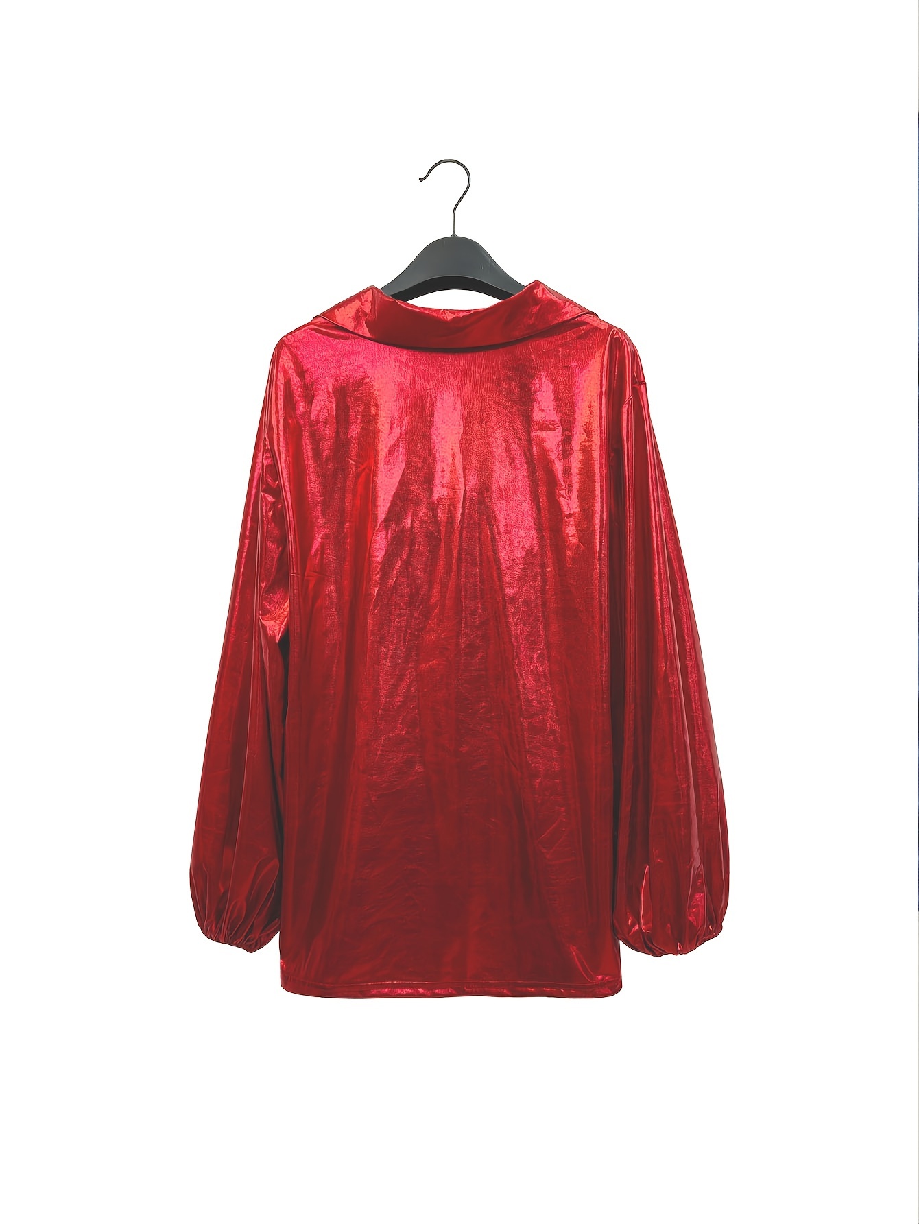Plus Size Women's Elegant Party Blouse - Glossy Red Imitation PU Coated Fabric with Puff Sleeve & Asymmetric Draped Neckline, Hand Wash Only, All-Season Versatile for Formal Events & Casual Outings, Special Occasions, Chic Style, Sleek Texture, Statement Top, Stylish Women, Evening Wear, Highquality Finish, Fashion Top, Fashion Lovers