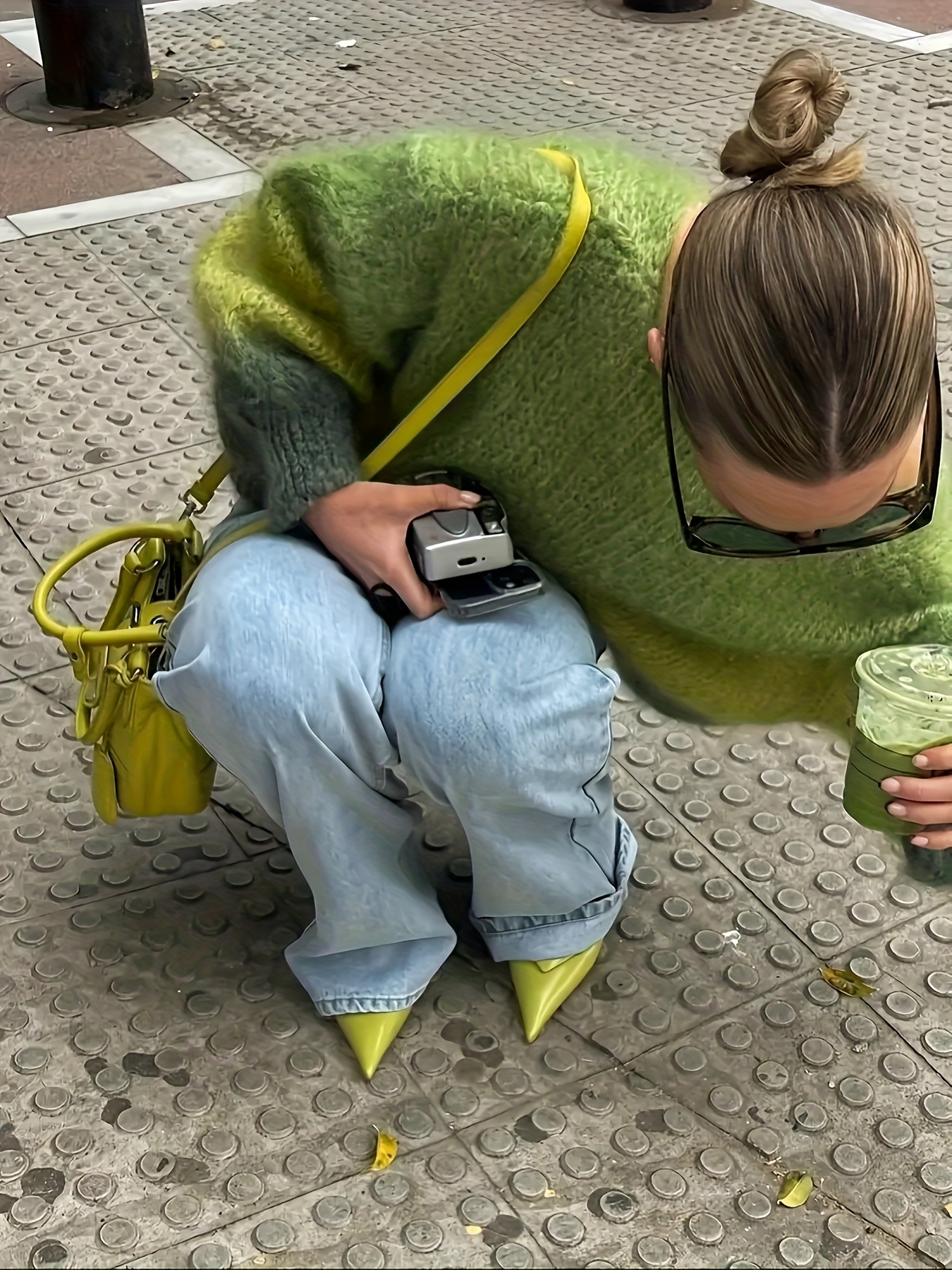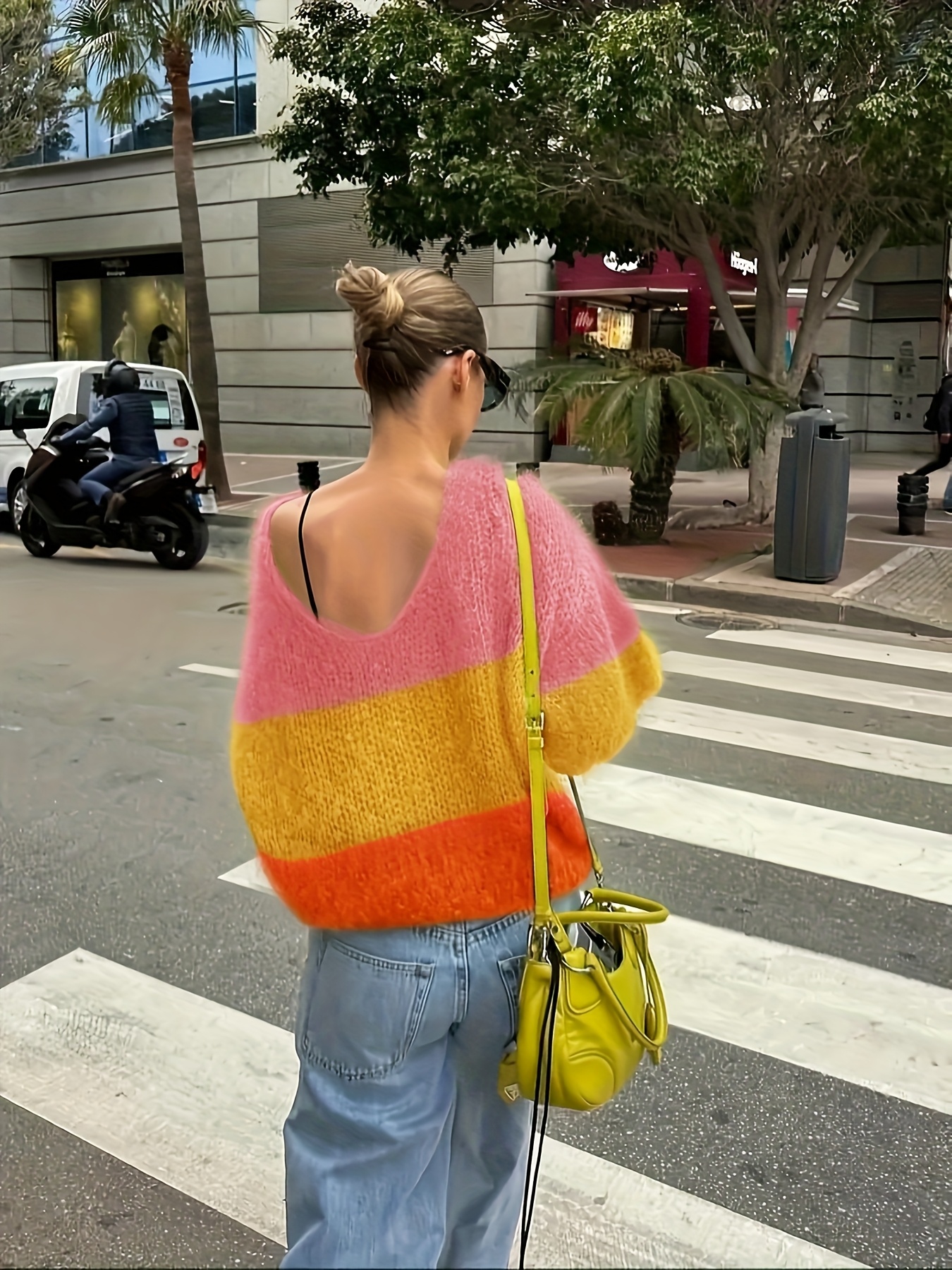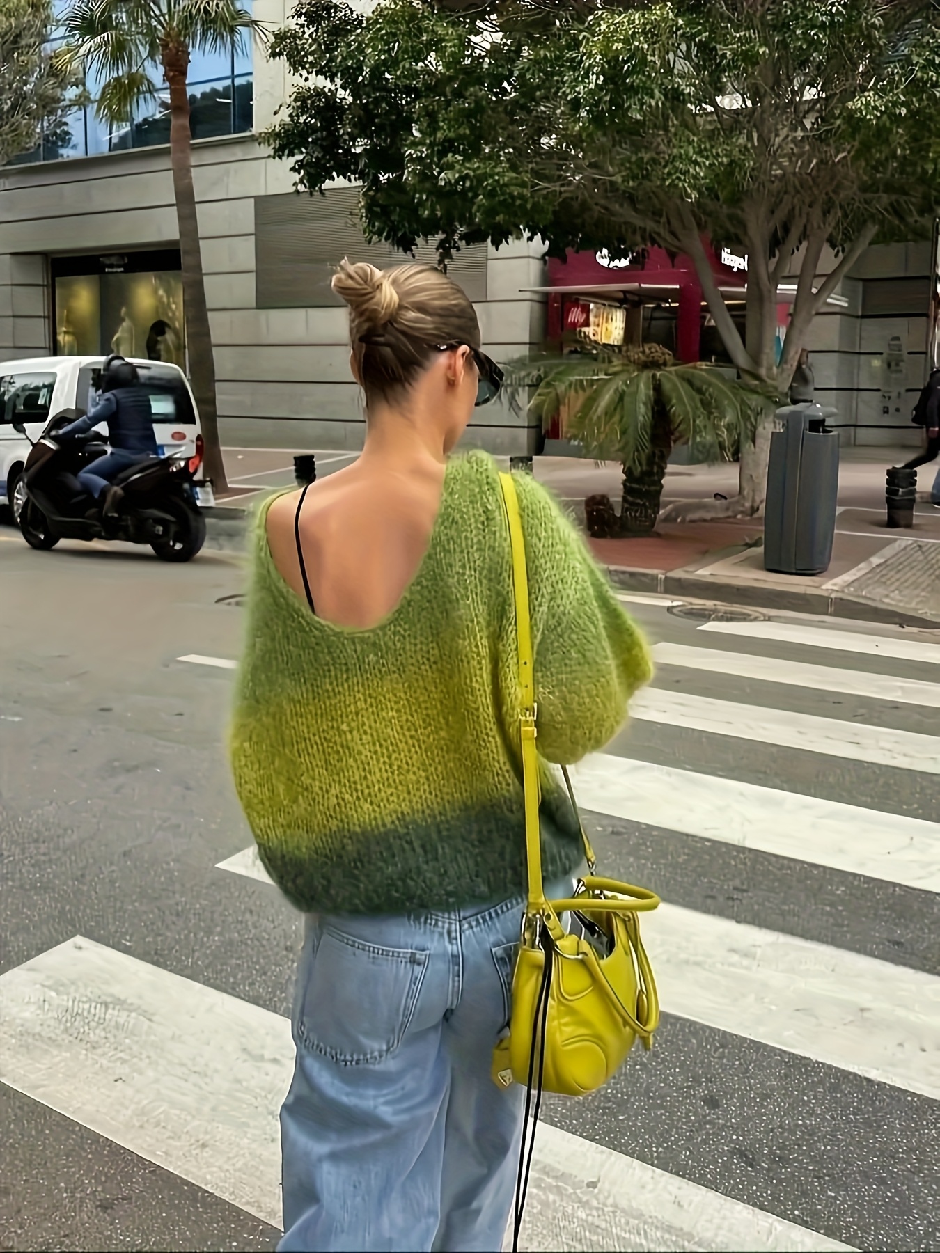 Women'S Elegant French-Inspired V-Neck Long Sleeve Cardigan - Gradient Green to Yellow, Open Front Design, Lightweight & Breathable for Spring/Fall, Perfect for Casual or Stylish Outfits, Spring Outerwear, Relaxed Fit, Soft Texture, Women Jumper And Sweater, Jumper Women Winter, Fall-autumn Clothe For Women, Pink Jumper, White Pink Fabric Strip, Off-shoulder Long Sleeve, Asymmetric Mustard Sweater, Winter For Women Outfit