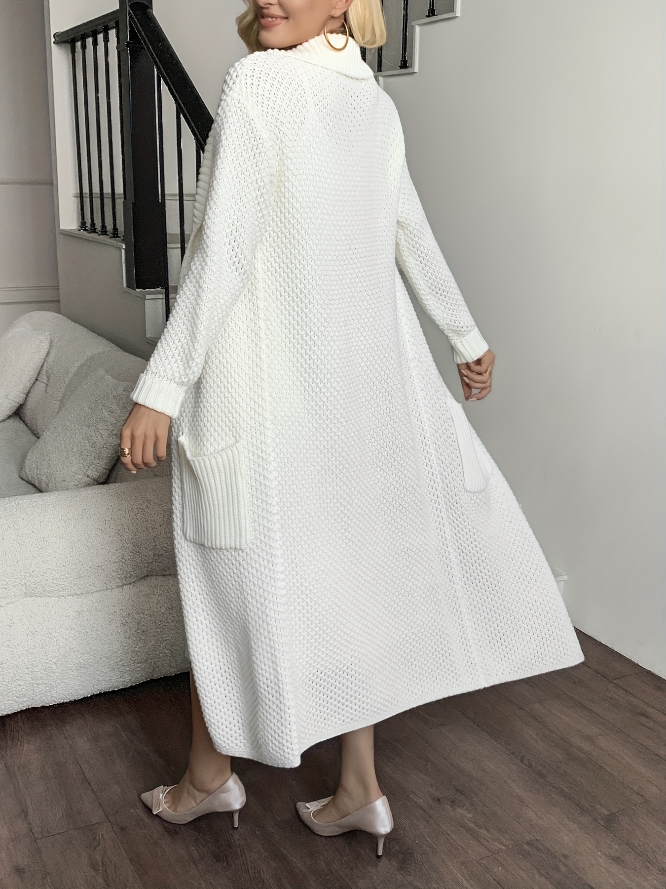 Women'S Long Cardigan - Elegant Lapel Collar Sweater, All-Season Chic Sweater for Everyday & Formal Outfits, Office, Parties - Women'S Clothing, Ladies Sweaters, Party Attire, Sophisticated Style, Durable Knitwear, Office Attire, Classic Design